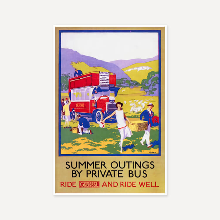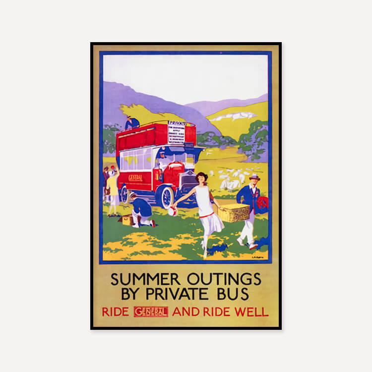 런던 종합 옴니버스 회사(London General Omnibus Company, LGOC)에서 런던 버스 대여 서비스를 홍보하기위해 제작한 포스터로, 아티스트 L.B Black이 여름 나들이를 표현했습니다.