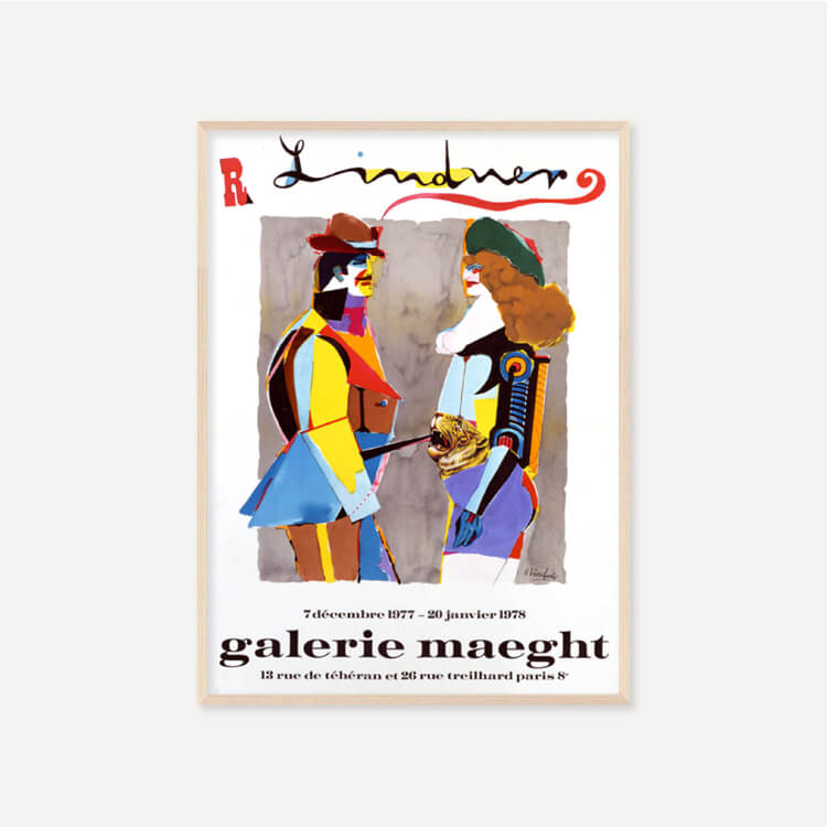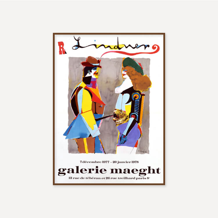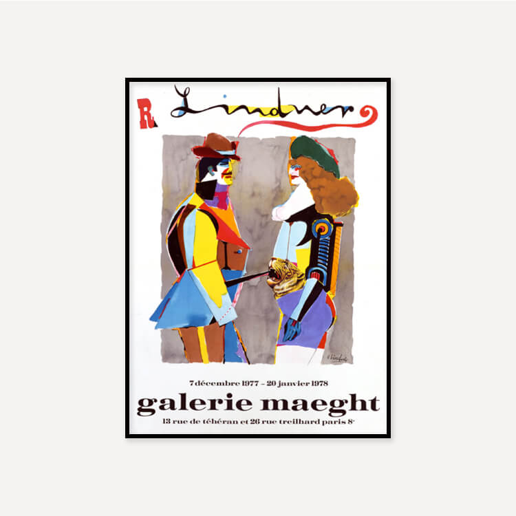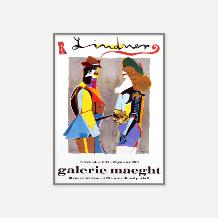 1977년 프랑스 마그(Maeght) 미술관에서 열린 리차드 린드너(Richard Lindner)의 전시회 포스터로, 그는 인간의 모습을 기계와 같은 요소와 혼합한 기괴한 에로틱 초상화로 유명한 미국계 독일인 예술가였습니다.