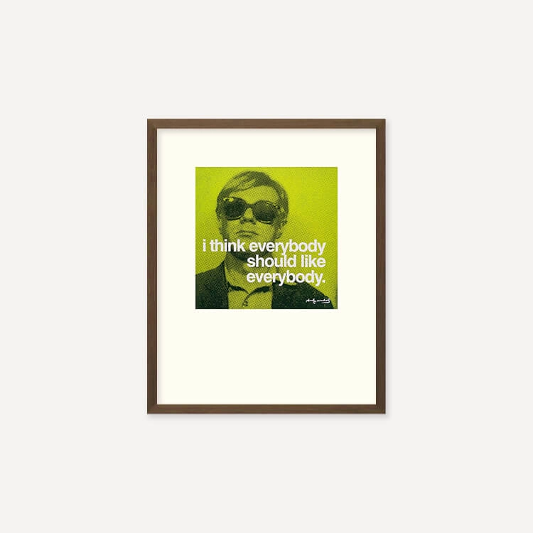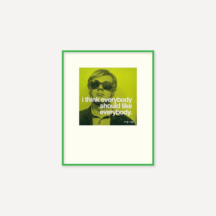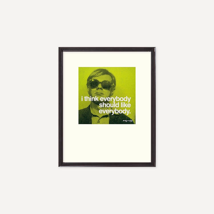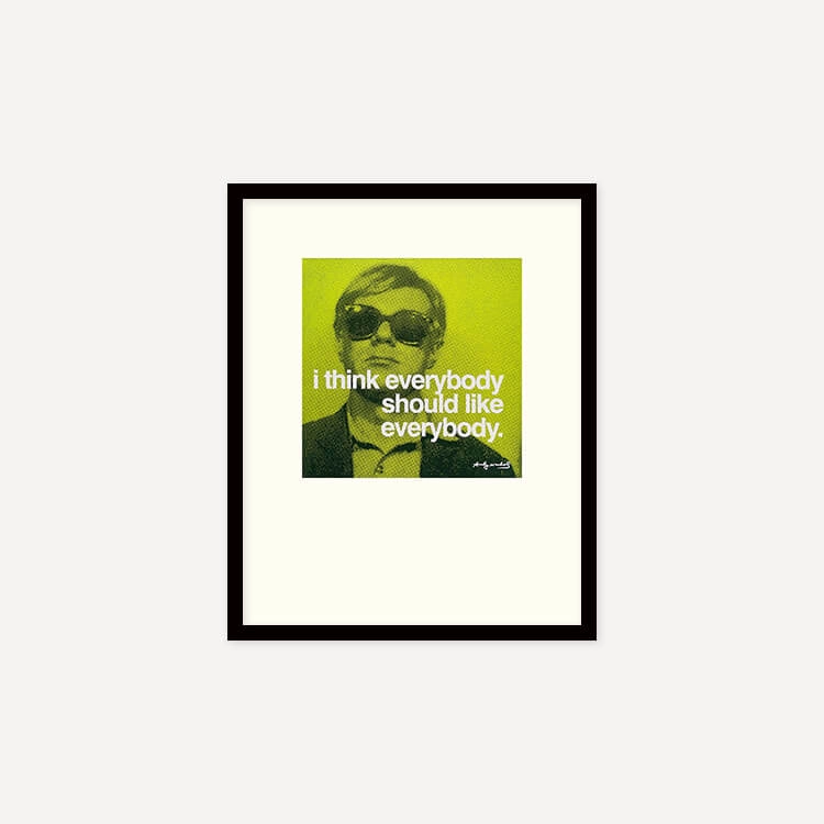 미국 팝아트의 제왕 앤디 워홀(Andy Warhol)의 가장 상징적인 인용문 ‘I think everybody should like everybody(모두가 모두를 좋아해야 한다고 생각한다)’가 담긴 프린트입니다.