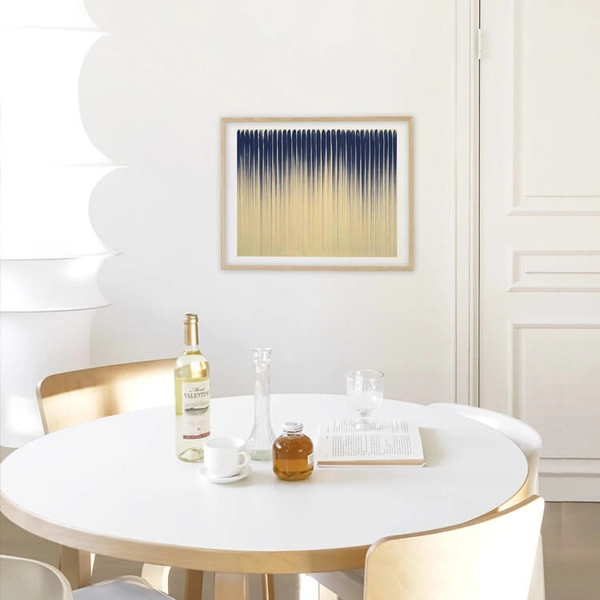 이우환(Lee Ufan)은 일본의 가장 중요한 미술 사조 중 하나인 '모노하'를 창립한 한국의 예술가로, 관람객, 예술 작품, 그리고 그들이 사는 공간 사이의 관계를 강조하는 획기적인 예술적 과정으로 저명합니다. 〈대화(Dialogue)〉는 소통하기 위해 우리 사이의 거리를 메워야 한다는 것을 말합니다. 회색 형상은 페인트로 가득 채운 넓고 평평한 붓을 사용하여 한 번의 획으로 칠해졌으며, 하얀 여백은 두 회색 형상 사이의 열린 공간을 깊이 느낄 수 있게끔 합니다.