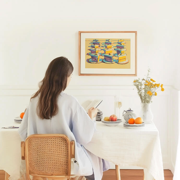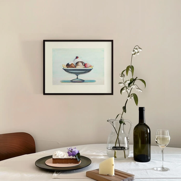 미국의 가장 달콤한 작가로 불리는 웨인 티보(Wayne Thiebaud)는 어린 시절 베이커리에서 일했던 경험을 삼아 디저트와 일상적인 사물을 그만의 독특한 스타일로 그렸습니다. 생생한 색감과 정확한 디테일, 물감의 물리적 특성을 활용하여 만든 휘핑크림 같은 질감 표현으로 관객에게 디저트의 유혹을 선사합니다.