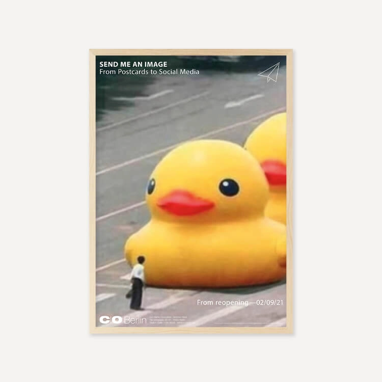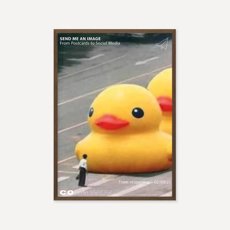 2021년 베를린 사진 미술관 C/O Berlin에서 열린 〈Send me an Image〉 전시회 포스터입니다. 이 전시회는 사진이 삽화 매체에서 오늘날 사회의 가장 중요한 의사 소통 수단 중 하나로 변모하는 것에 대해 다루었습니다. 포스터 속 이미지는 1989년 천안문 사태를 상징하는 정부 탱크에 맞서는 중국 시위자 사진을 패러디한 작품입니다.