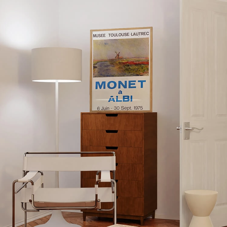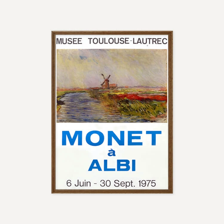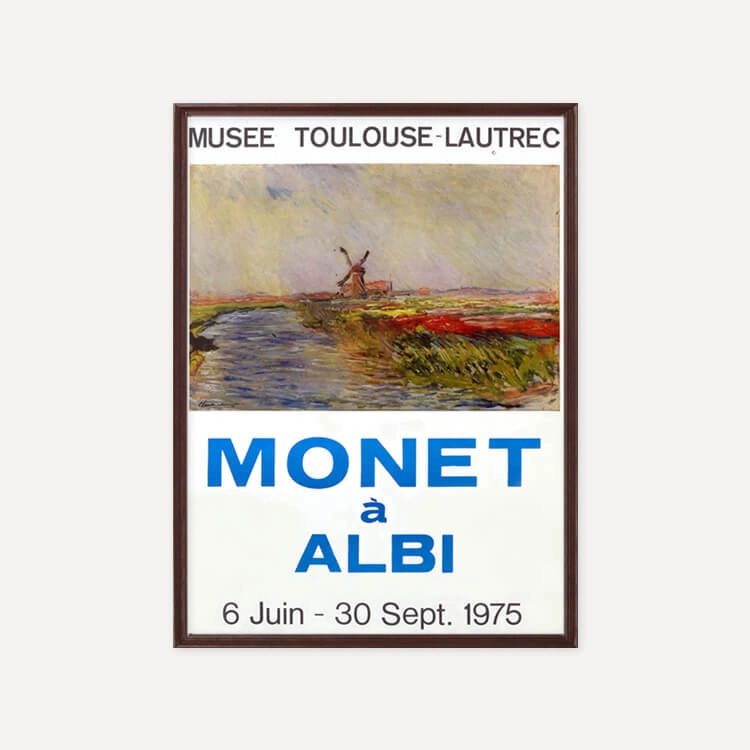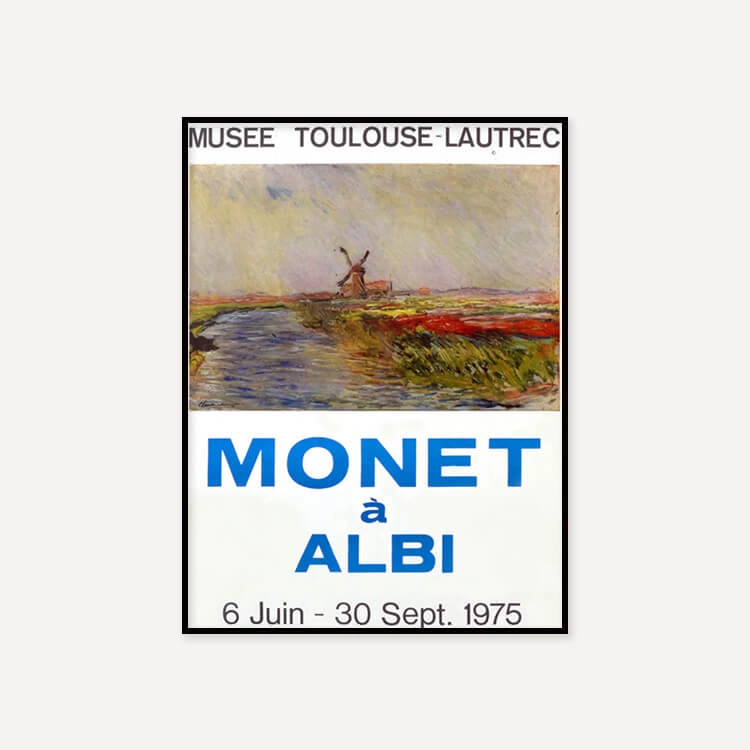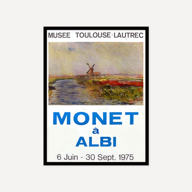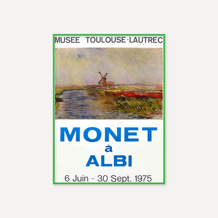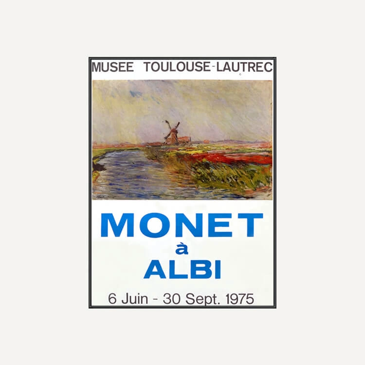 1975년 프랑스 툴루즈 로트레크(Toulouse-Lautrec) 미술관에서 열린 〈Monet à Albi〉 전시회 포스터입니다. 프랑스 인상파 화가 클로드 모네(Claude Monet)는 ‘빛은 곧 색채’라는 인상주의 원칙을 끝까지 고수하며, 동일한 사물이 빛에 따라 변화하는 모습을 연작을 통해 탐색했습니다.