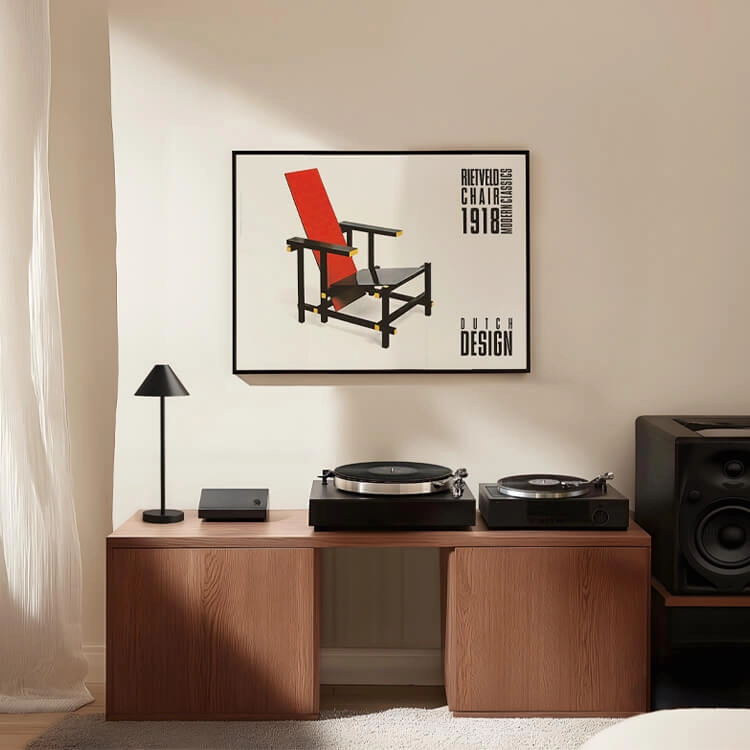네덜란드의 가구 디자이너이자 건축가인 게리트 리트벨트(Gerrit Rietveld)가 1918년에 디자인한 〈Rood-blauw stoel(Red and Blue Chair)〉은 기하학적 조형미와 기능성을 결합한 디자인 체어로, 네덜란드의 추상미술 운동 ‘데 스틸(De Stijl)’이 추구한 신조형주의 정신을 대표하는 걸작입니다. 단순한 형태 속에 철학적 사유와 미학이 깃든 이 작품은 합리성과 미니멀리즘의 조화를 보여주는 상징적인 디자인으로 평가받습니다.