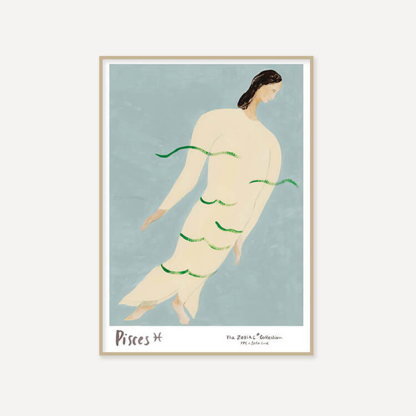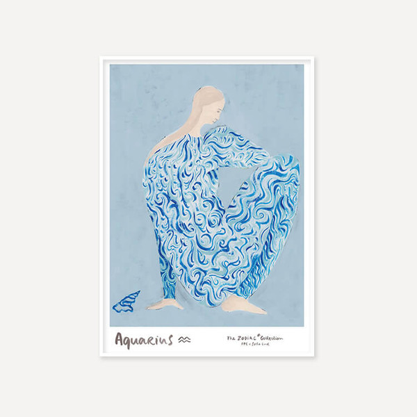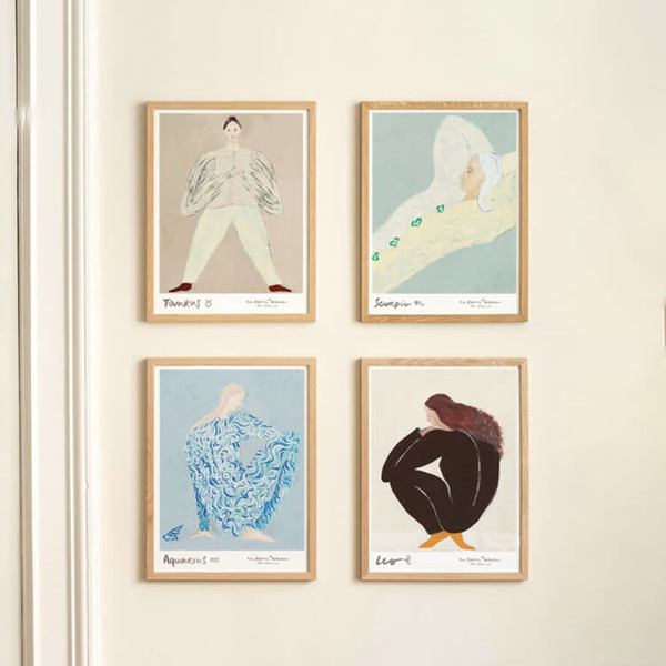50.0 x 70.0 cm 소피아 린드(Sofia Lind)의 〈The Zodiac Collection〉은 열두 별자리를 하나의 연작으로 풀어낸 시리즈입니다. 고정된 상징 대신, 각 별자리를 살아 있는 인물처럼 표현해 그 본질과 감정을 섬세하게 담아냈습니다. 그녀는 종이에 과슈(gouache)를 사용해 투명하면서도 밀도 있는 질감을 표현하고, 부드럽고 은...