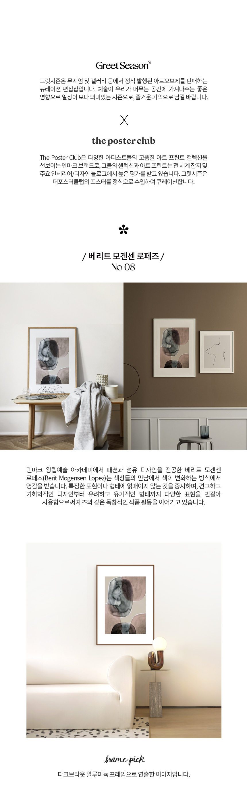 덴마크 왕립예술 아카데미에서 패션과 섬유 디자인을 전공한 베리트 모겐센 로페즈(Berit Mogensen Lopez)는 색상들의 만남에서 색이 변화하는 방식에서 영감을 받습니다. 특정한 표현이나 형태에 얽매이지 않는 것을 중시하며, 견고하고 기하학적인 디자인부터 유려하고 유기적인 형태까지 다양한 표현을 번갈아 사용함으로써 재즈와 같은 독창적인 작품 활동을 이어가고 있습니다.
