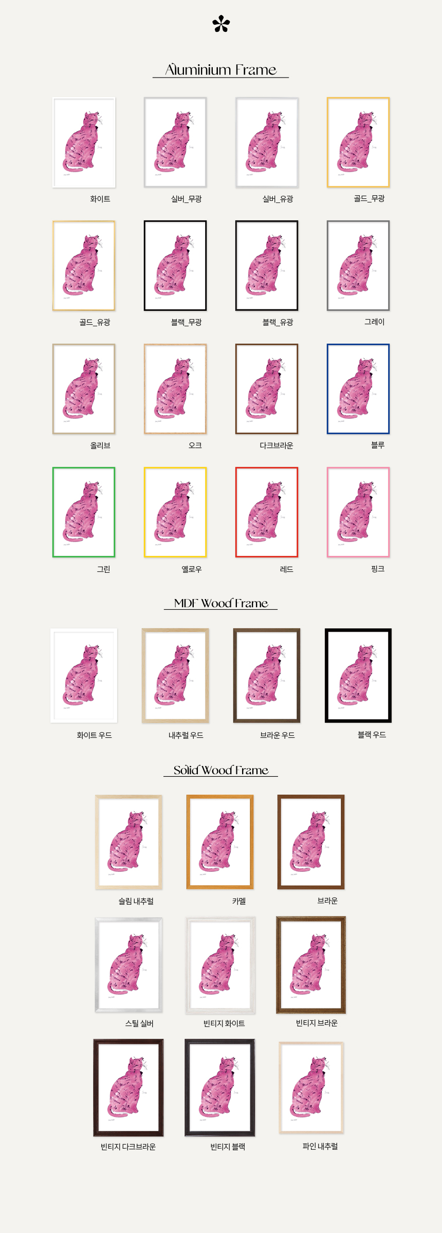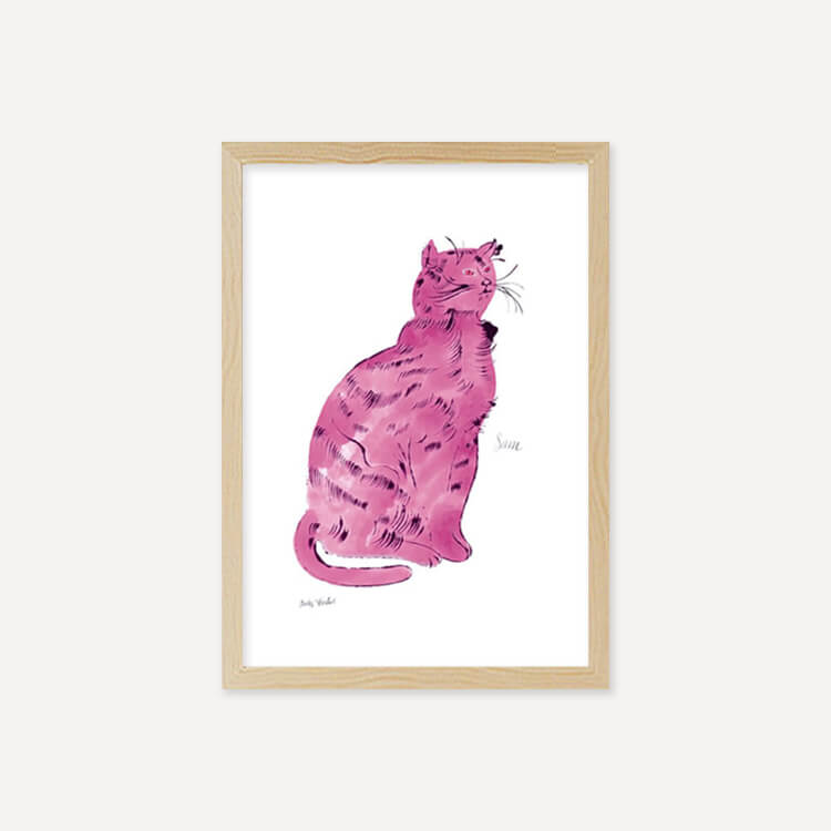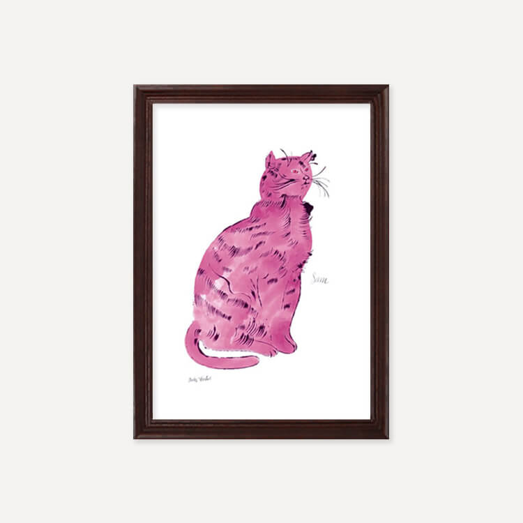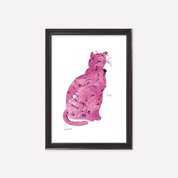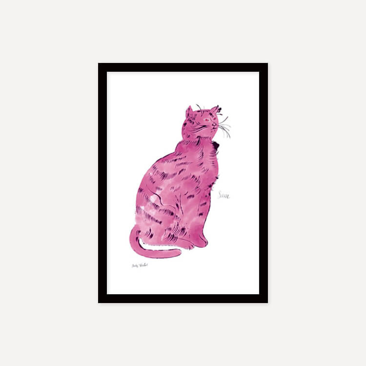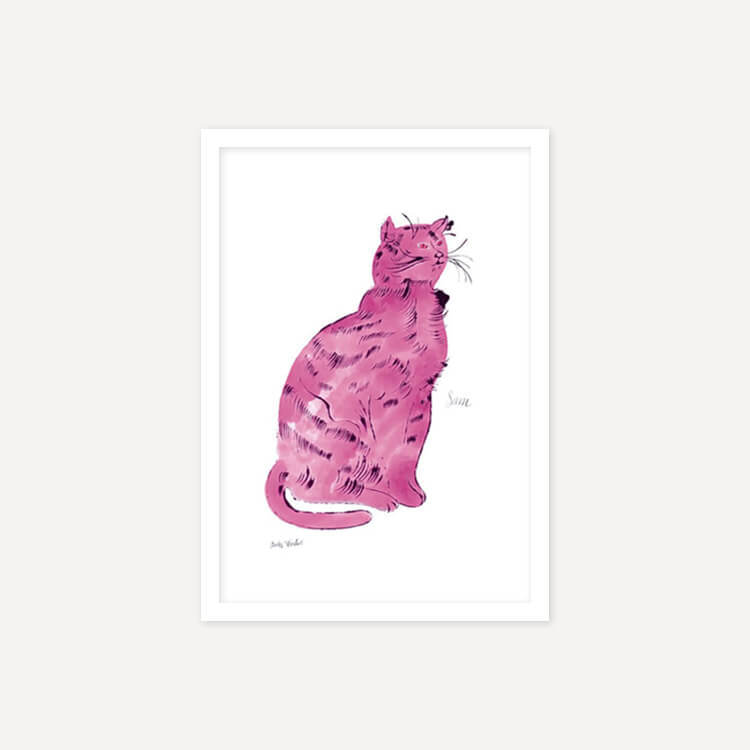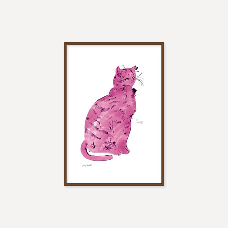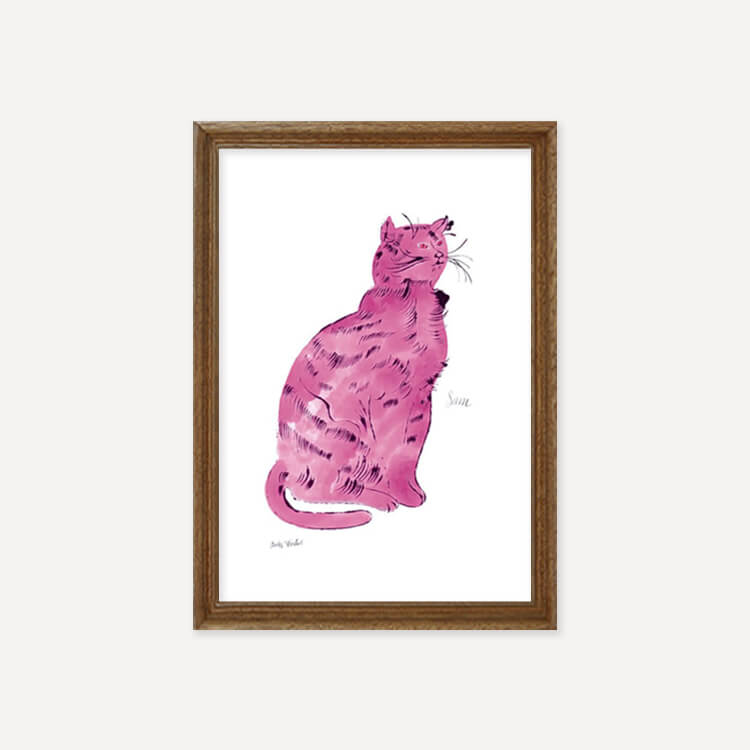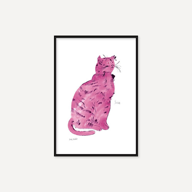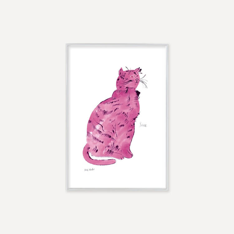 〈Pink Sam〉은 앤디 워홀(Andy Warhol)의 고양이 사랑이 담긴 유쾌한 작품입니다. 수염 난 분홍 고양이 한 마리가 등장하는 이 그림은, 그가 1950~60년대에 키우던 고양이들에서 영감을 받았습니다. 그 시절 워홀은 거의 모든 고양이에게 ‘샘(Sam)’이라는 이름을 붙였고, 단 한 마리만 ‘헤스터(Hester)’라 불렀습니다. 그는 직접 고양이 초상화를 그려 1954년 책 〈25 Cats Named Sam and One Blue Pussy〉를 펴냈고, 어머니 줄리아의 고양이 그림을 모은 〈Holy Cats by Andy Warhol’s Mother〉도 함께 출간했습니다. 당시 워홀의 집에 들렀다면, 고양이 한 마리를 선물로 받고 왔을지도 모를 만큼 고양이는 그의 삶과 예술의 중요한 부분이었습니다.