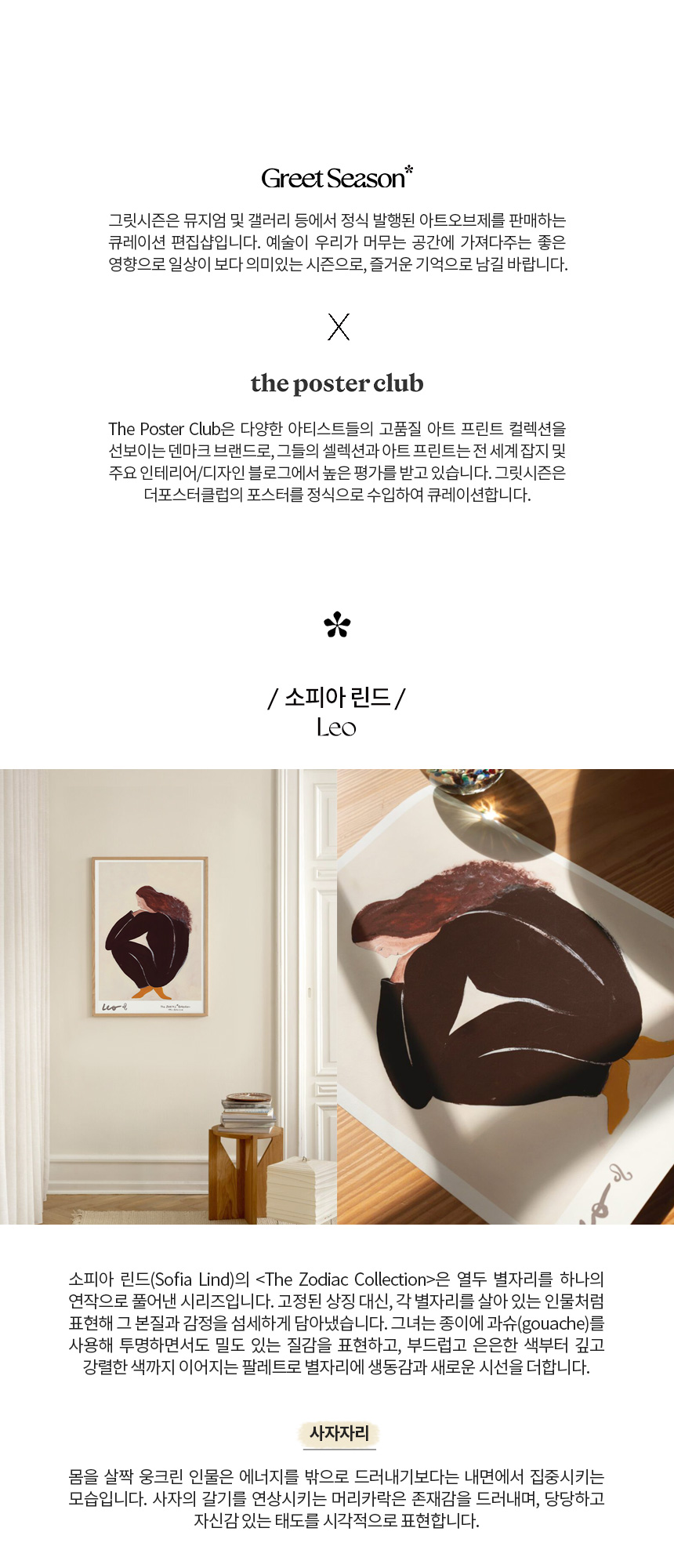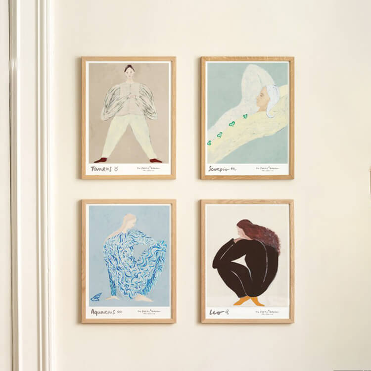 소피아 린드(Sofia Lind)의 〈The Zodiac Collection〉은 열두 별자리를 하나의 연작으로 풀어낸 시리즈입니다. 고정된 상징 대신, 각 별자리를 살아 있는 인물처럼 표현해 그 본질과 감정을 섬세하게 담아냈습니다. 그녀는 종이에 과슈(gouache)를 사용해 투명하면서도 밀도 있는 질감을 표현하고, 부드럽고 은은한 색부터 깊고 강렬한 색까지 이어지는 팔레트로 별자리에 생동감과 새로운 시선을 더합니다.