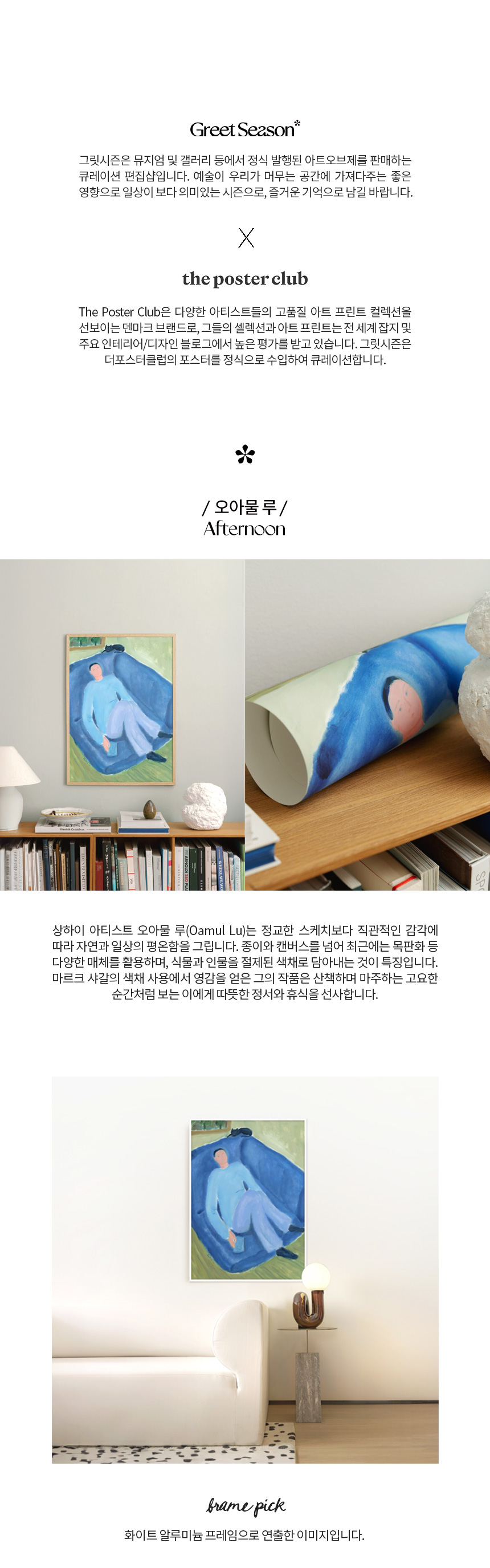 상하이 아티스트 오아물 루(Oamul Lu)는 정교한 스케치보다 직관적인 감각에 따라 자연과 일상의 평온함을 그립니다. 종이와 캔버스를 넘어 최근에는 목판화 등 다양한 매체를 활용하며, 식물과 인물을 절제된 색채로 담아내는 것이 특징입니다. 마르크 샤갈의 색채 사용에서 영감을 얻은 그의 작품은 산책하며 마주하는 고요한 순간처럼 보는 이에게 따뜻한 정서와 휴식을 선사합니다.