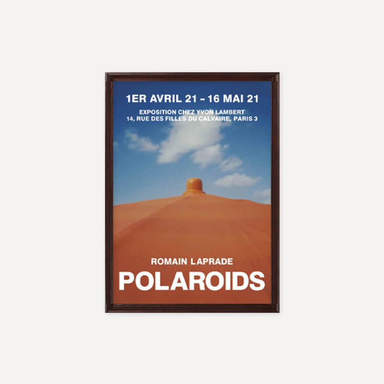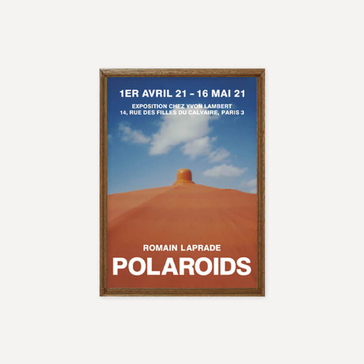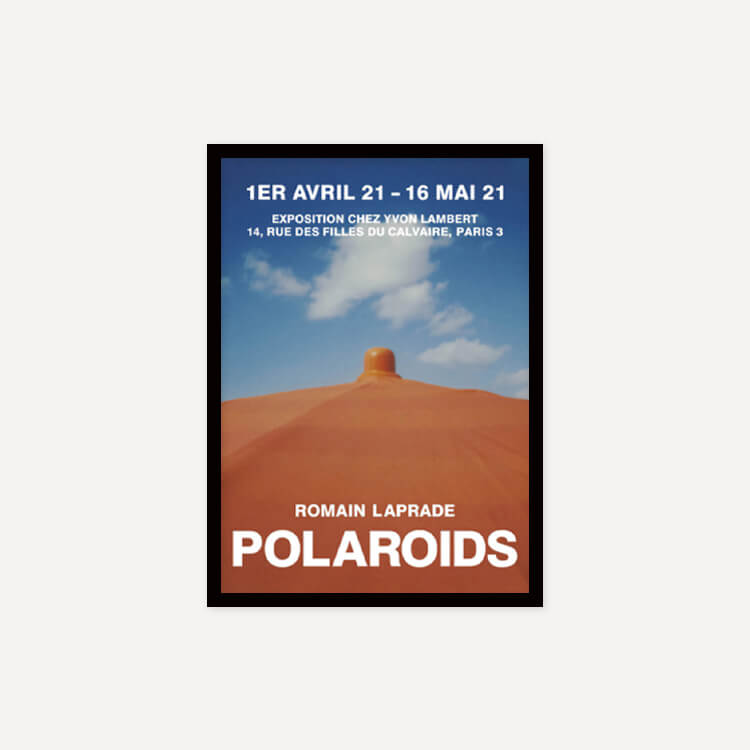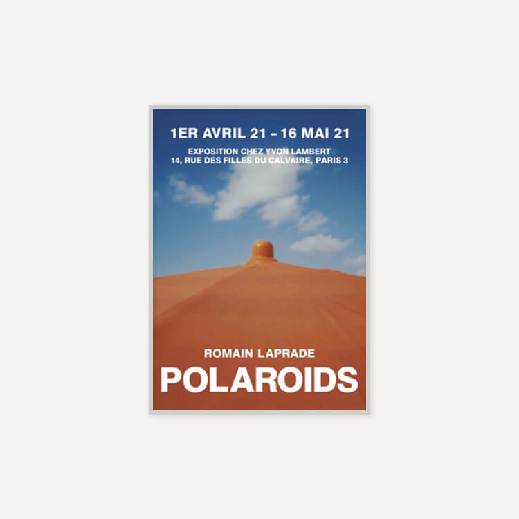 2021년 프랑스 이봉랑베르(Yvon Lambert)에서 열린 로망 라프라드(Romain Laprade)의 〈Polaroids〉 전시회 포스터입니다. 코로나19로 파리가 봉쇄되며 이동 범위가 제한적이었음에도, 그는 즉석 카메라를 통해 동네에 흩어져 있는 작은 요소들을 포착하며 스스로의 도전인 이 시리즈를 완성했습니다.