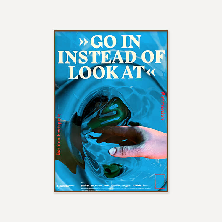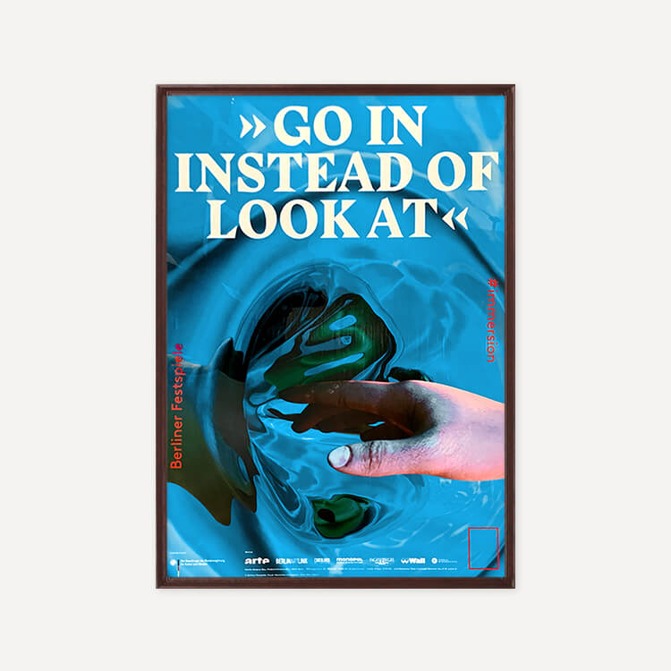 작가의 액션을 외계의 환경으로 확장하는 ‘해프닝(happening)’의 창시자 앨런 캐프로(Allan Kaprow)의 명언 〈Go In! Instead of Look at!〉이 담긴 포스터입니다. 실제 공간과 시간의 내재된 역학관계를 수반하는 작품이 그의 특징입니다.