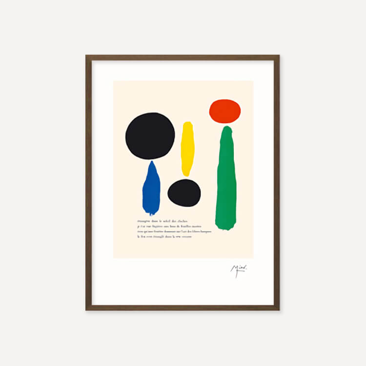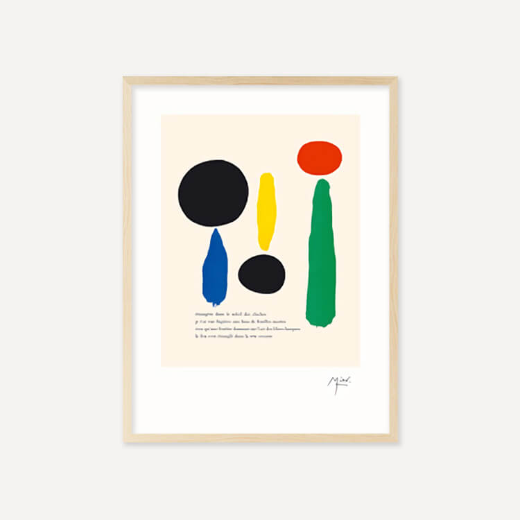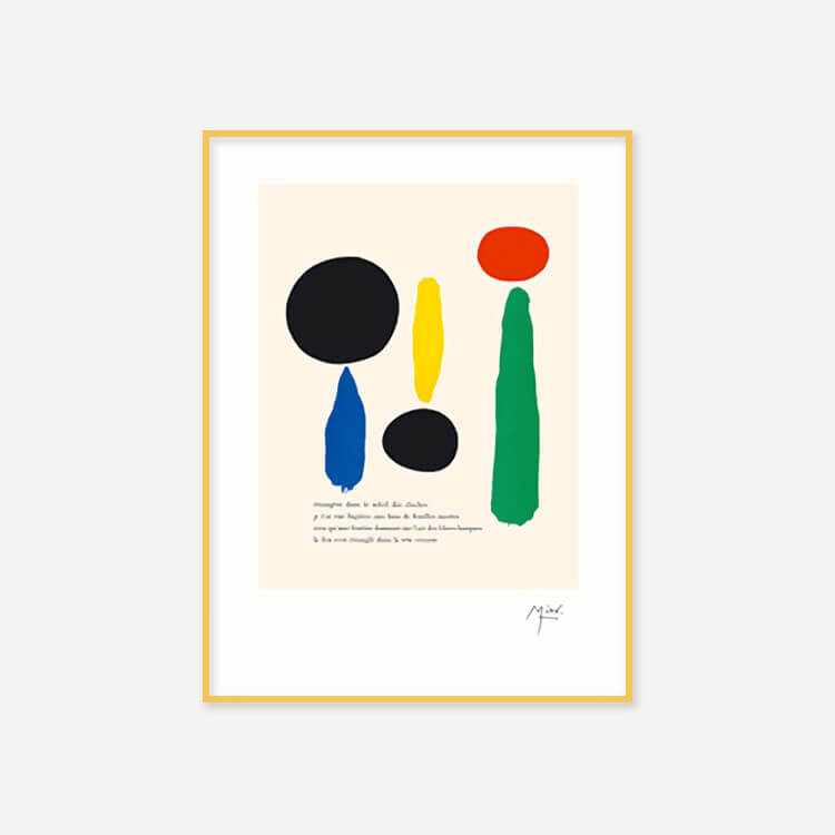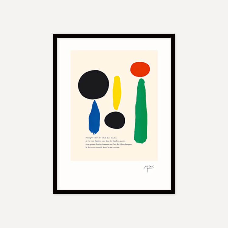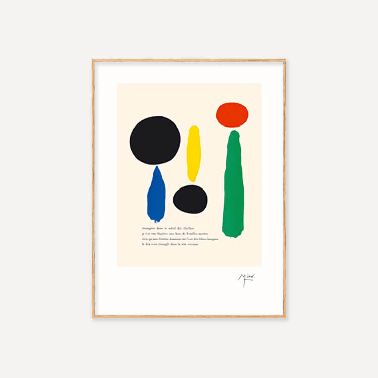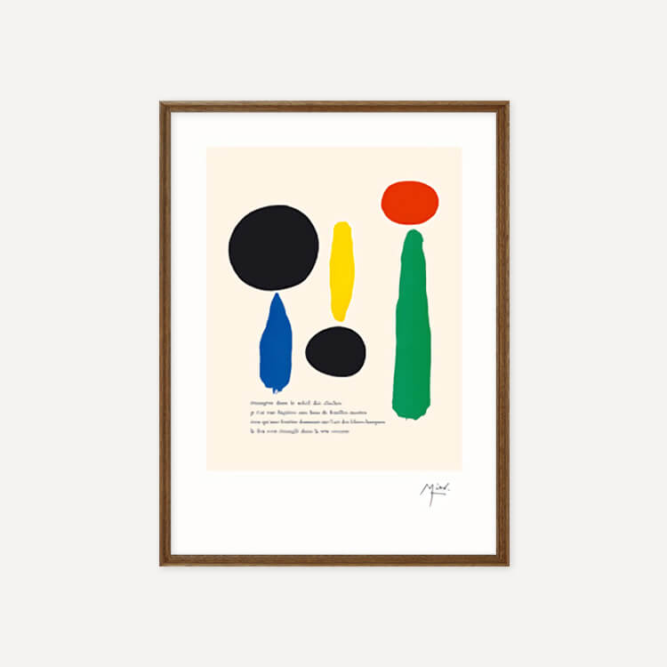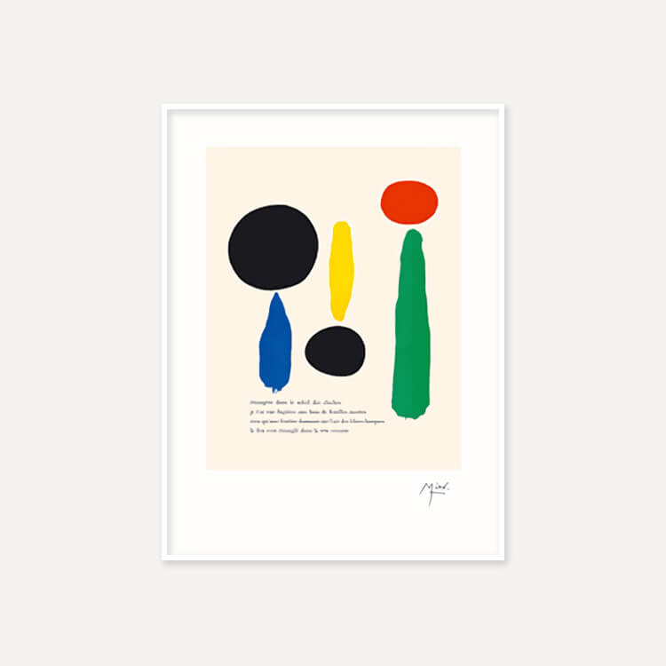 짙고 밝은 색채와 추상적인 형태가 특징인 스페인 화가 호안 미로(Joan Miró)가 그리고, 시인 트리스탕 차라(Tristan Tzara)가 쓴 〈Parler Seul〉 책의 한 페이지를 담고 있습니다.
