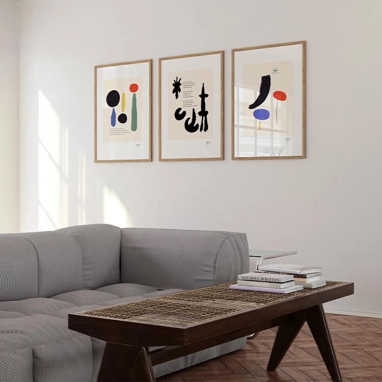 짙고 밝은 색채와 추상적인 형태가 특징인 스페인 화가 호안 미로(Joan Miró)가 그리고, 시인 트리스탕 차라(Tristan Tzara)가 쓴 〈Parler Seul〉 책의 한 페이지를 담고 있습니다.