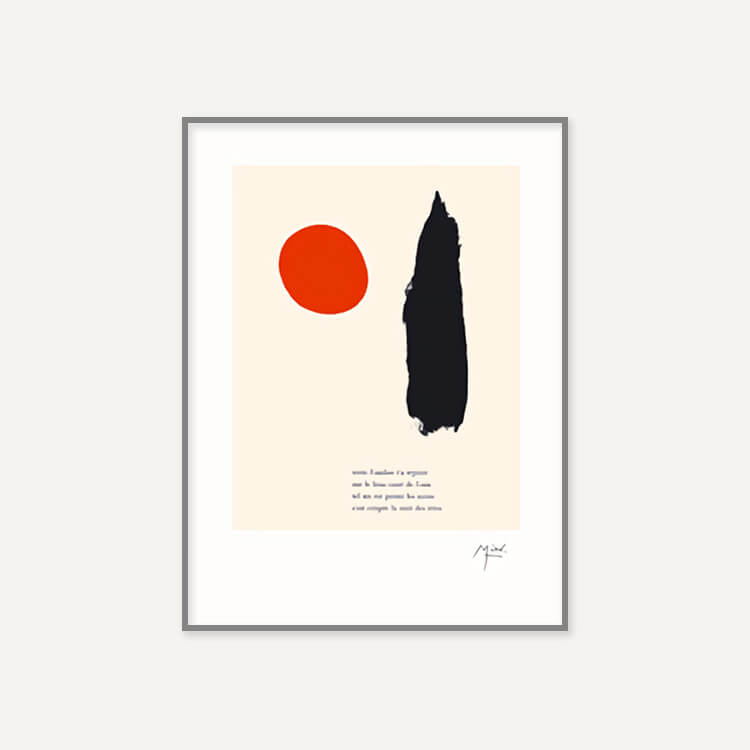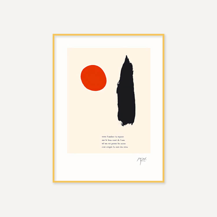 짙고 밝은 색채와 추상적인 형태가 특징인 스페인 화가 호안 미로(Joan Miró)가 그리고, 시인 트리스탕 차라(Tristan Tzara)가 쓴 〈Parler Seul〉 책의 한 페이지를 담고 있습니다.
