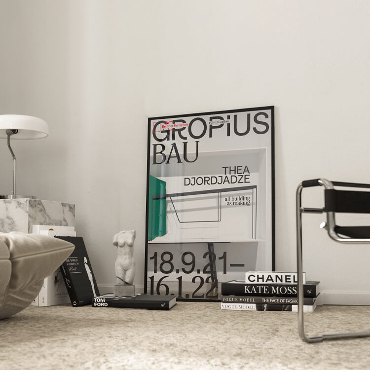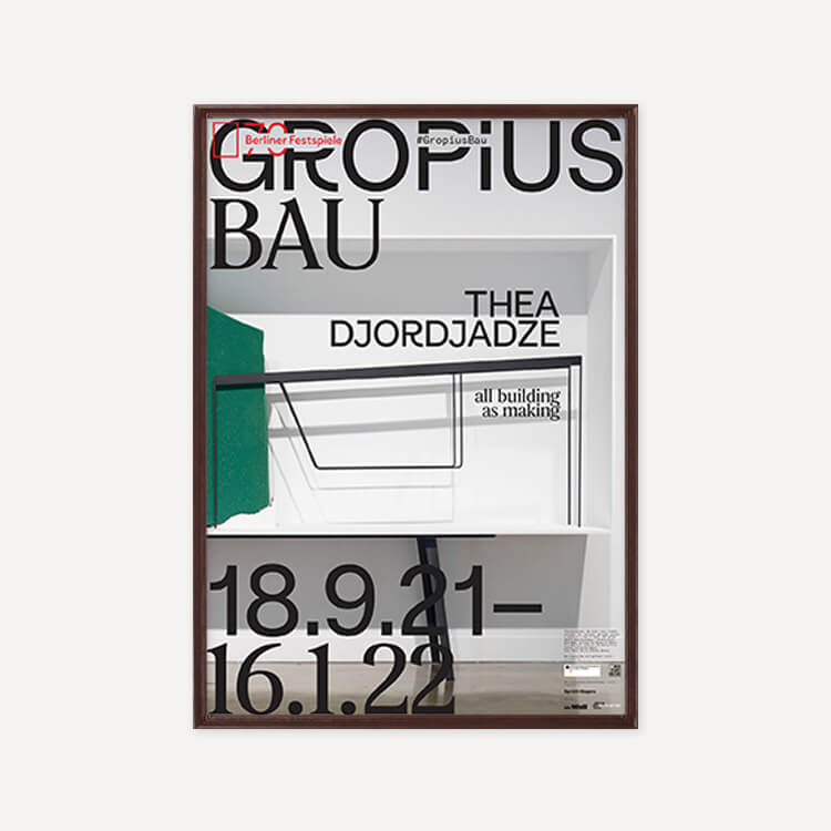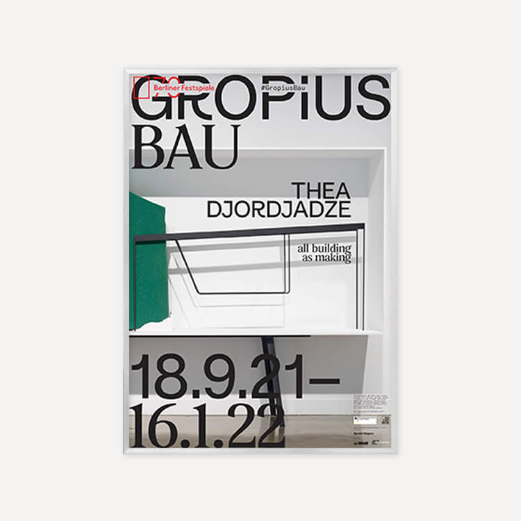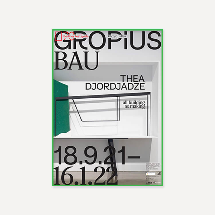 2021년 베를린 그로피우스 바우(Gropius Bau) 미술관에서 열린 테아 조르자제(Thea Djordjadze)의 〈All Building As Making〉 전시회 포스터로, 그녀의 조각 작품들은 작은 뉘앙스, 주변 디테일, 미묘한 완벽함 또는 불완전함 등 예상치 못한 대비를 가진 독특한 미학을 가지고 있습니다.
