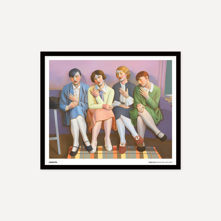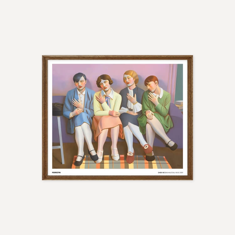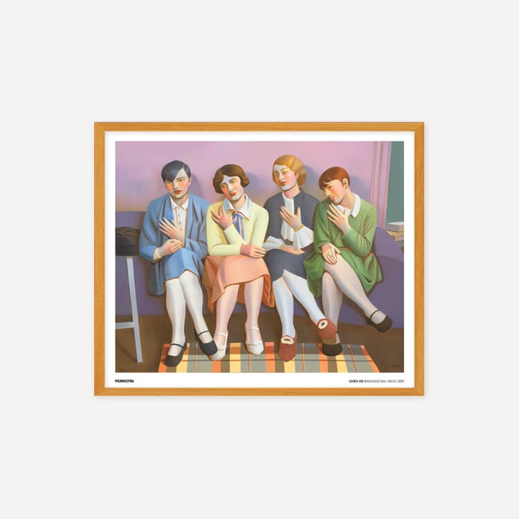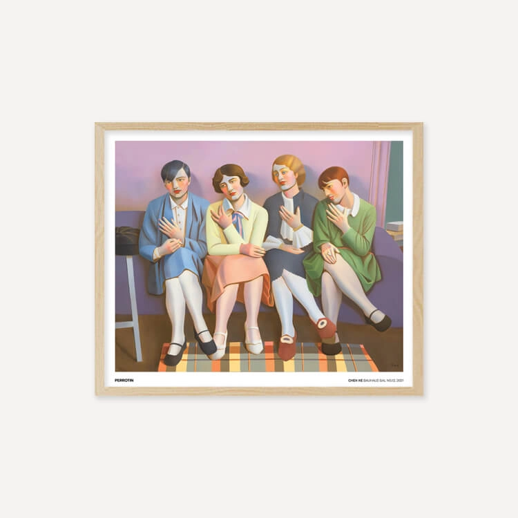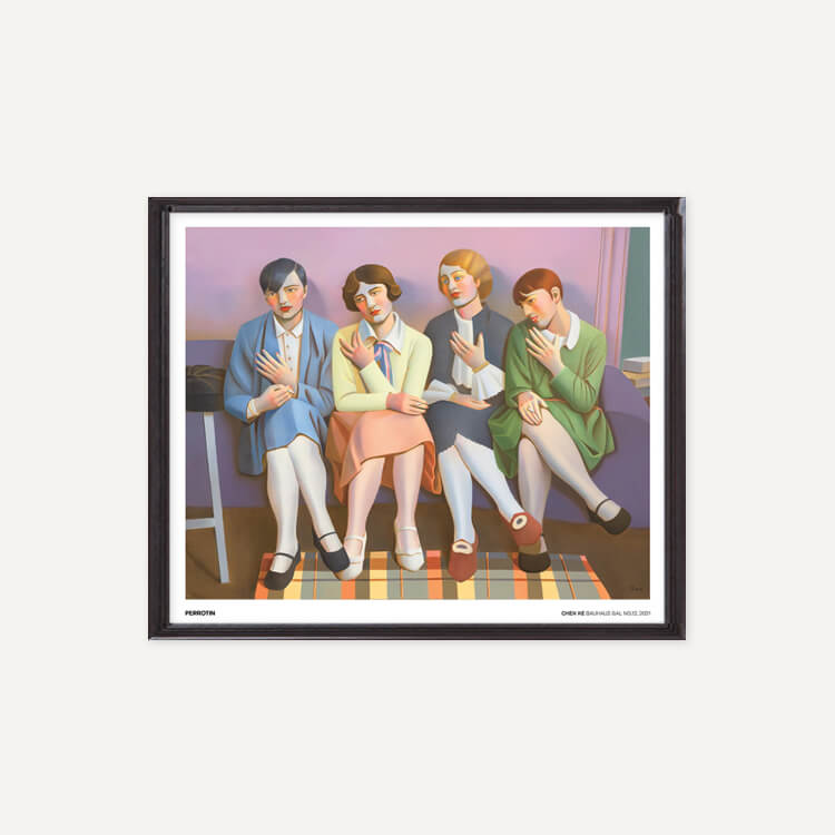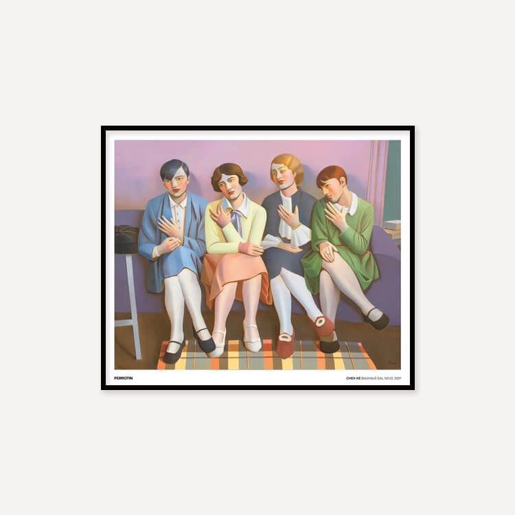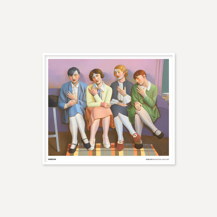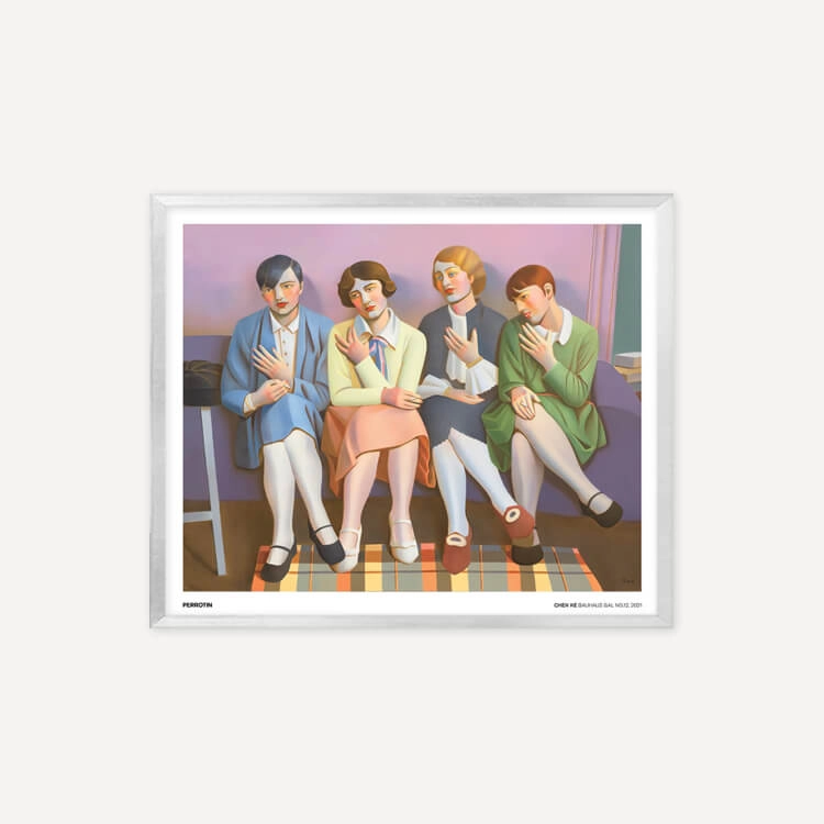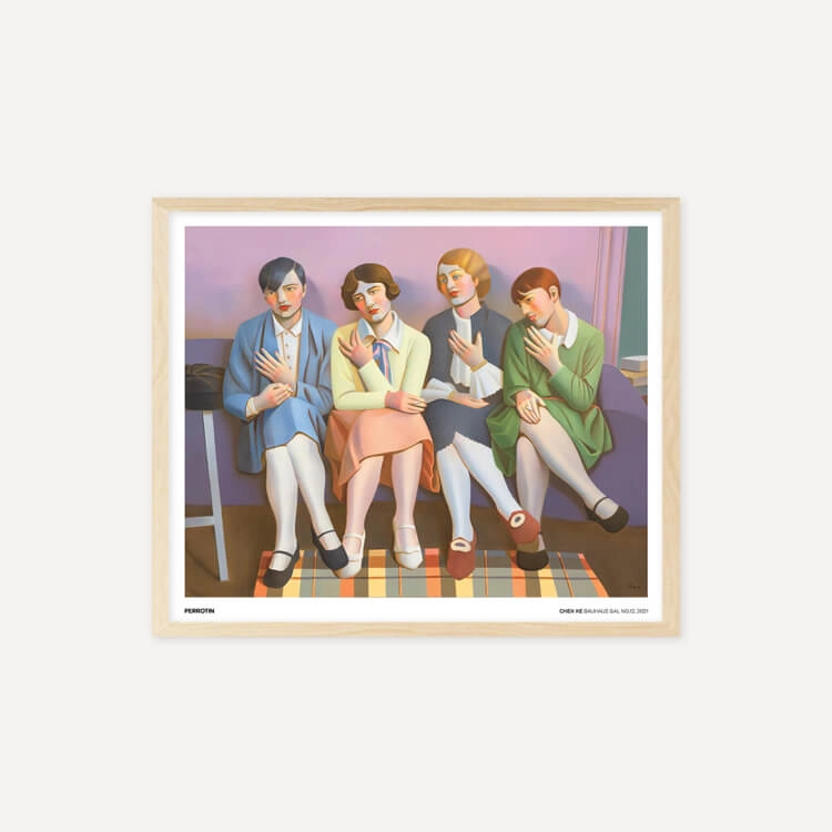 중국 화가 천 커(Chen Ke)의 〈Bauhaus Gal〉 시리즈는 바우하우스의 시대정신적 아카이브 사진을 기반으로 합니다. 그녀는 자신의 세계에 몰입하며 삶의 특정 순간을 재현하고 냄새, 빛, 촉각과 같은 무의식적인 기억을 회상하여 아카이브 이미지를 회화로 되살렸습니다.