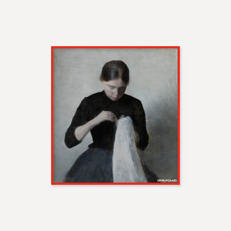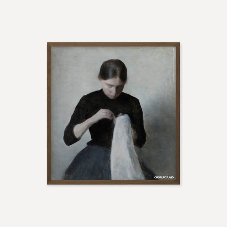 상징주의 화가 빌헬름 함메르쇠이(Vilhelm Hammershoi)는 친근하고 분위기 있는 인테리어와 조용한 풍경을 그려내며, 공허함이 조용한 사색을 불러일으키는 고요하고 수수께끼 같은 건축 공간을 묘사했습니다. 이 작품은 그의 여동생 안나 함메르쇠이(Anna Hammershoi)의 모습을 담았습니다.