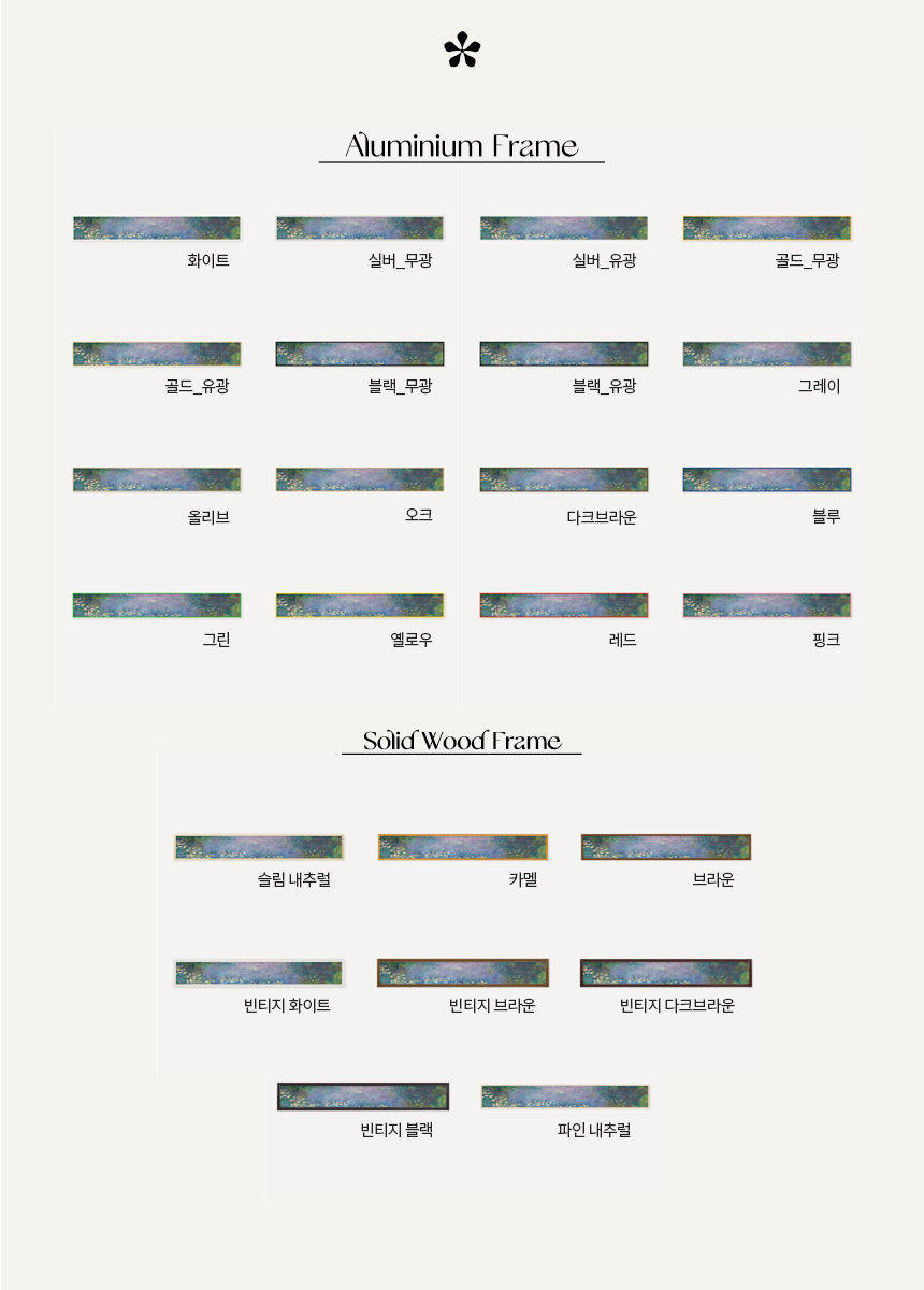 빛의 화가 클로드 모네(Claude Monet)는 1908년 이후 시력이 매우 나빠져 대상을 가장 잘 포착할 수 있는 낮 시간을 택해 작업했으며, 자신이 이전에 보았던 대상에 대한 기억과 관찰을 종합하여 작품을 이어갔습니다. 또한 1914년 이후 수련 작품들은 이전과 달리 옆으로 훨씬 더 넓어진 캔버스를 사용했습니다.
