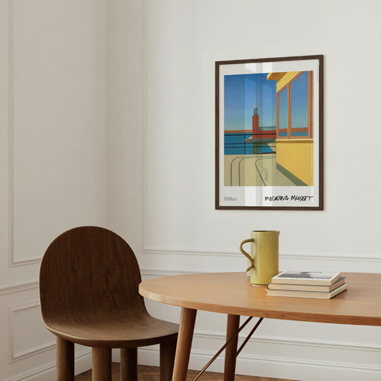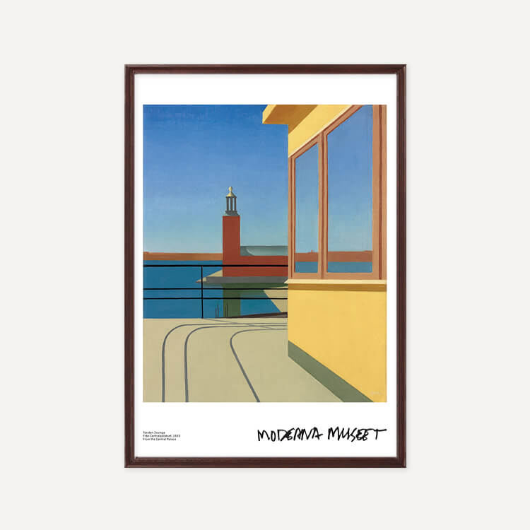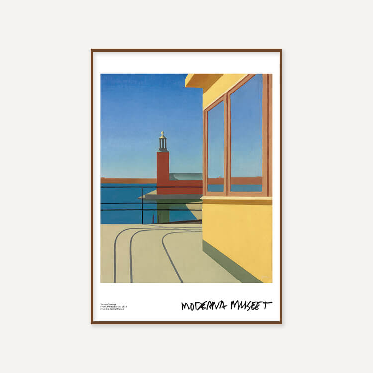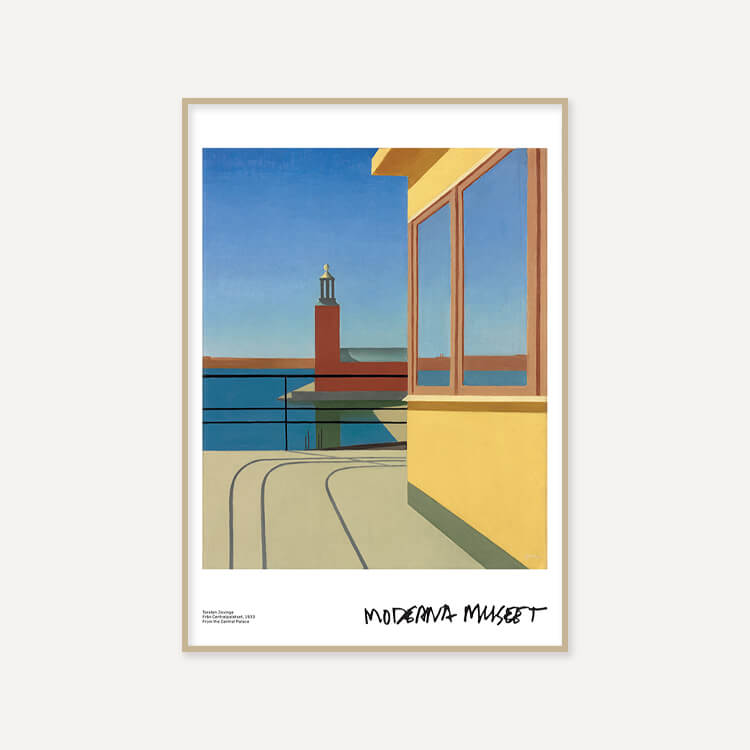 스웨덴 화가 톨스텐 요빈지(Torsten Jovinge)는 주로 큐비즘에 뿌리를 두고 있지만 장식적이고 복잡한 형태에 반대하는 20세기 초 예술 운동인 순수주의와 관련이 있습니다. 이 작품은 Norrström 강이 내려다보이는 스톡홀름 왕궁 밖의 풍경을 묘사한 것으로, 몇 가지 색상만 사용함으로써 그림의 전체적인 형태에 관심을 끌고 있습니다.