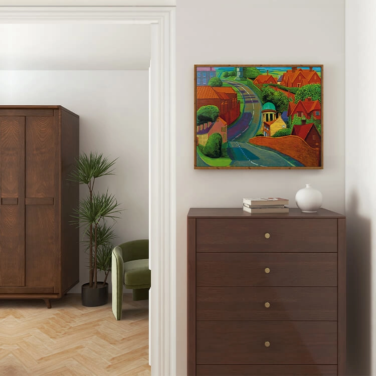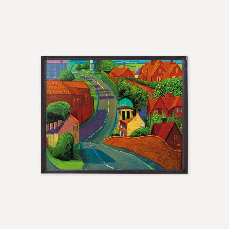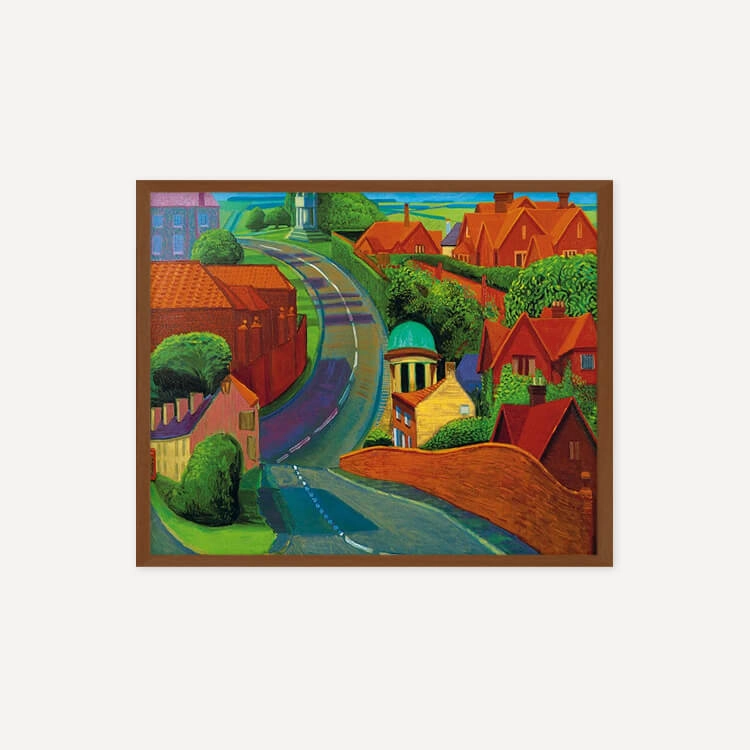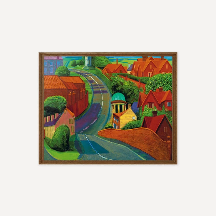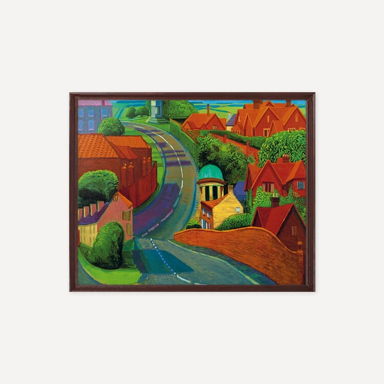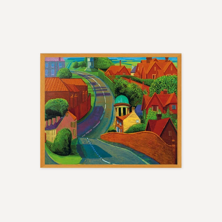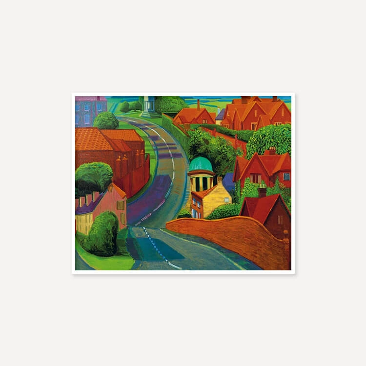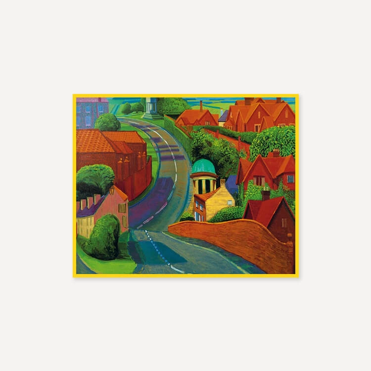 1997년 여름 데이비드 호크니(David Hockney)가 종종 친구를 보기 위해 지나던 길을 그린 것으로, 주변 건물들의 화려한 붉은 벽돌과 인근 시골 지역의 선명한 푸른색들이 꼬불꼬불한 길을 따라 펼쳐지며 마법 같은 느낌을 자아냅니다.