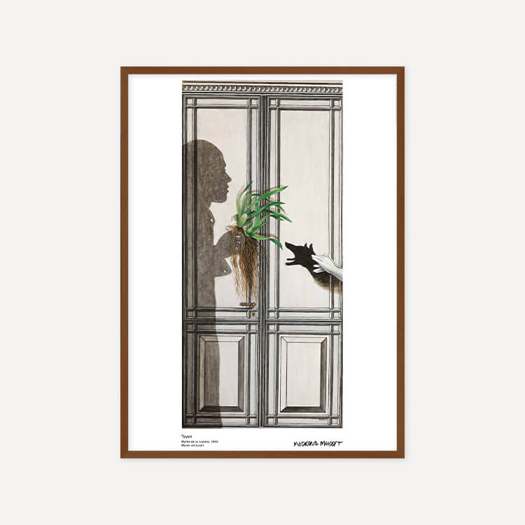 1920년대 프랑스 시민을 지칭하는 성 중립적 예술가의 이름 ‘토옌(Toyen)’은 제2차 세계 대전 기간 동안 초현실주의 운동의 활동과 프라하뿐만 아니라 파리의 국제 전시회에 참여했습니다. 토옌은 젊은 시인 진드리치 하이슬러(Jindrich Heisler)를 화장실에 숨겼는데, 〈Mythe de la lumière〉 작품 속 문에서 보이는 것은 그의 그림자입니다. 토옌은 진드리치 하이슬러가 빛을 얼마나 사랑했는지, 몇 년 동안 빛을 즐기지 못해 얼마나 많은 고통을 겪었는지에 대해 이야기했습니다.