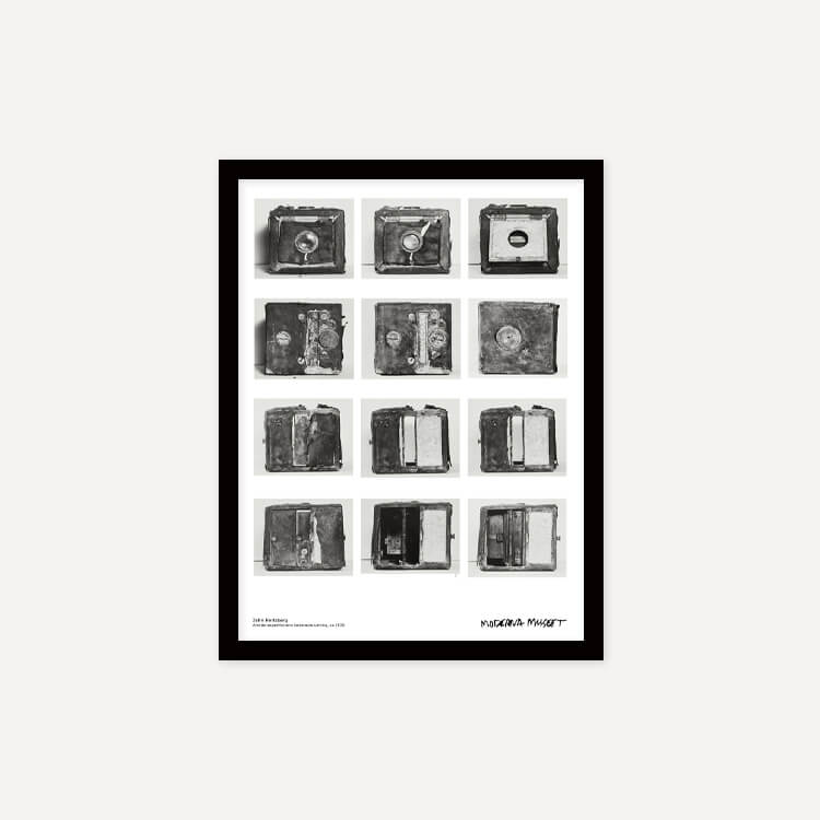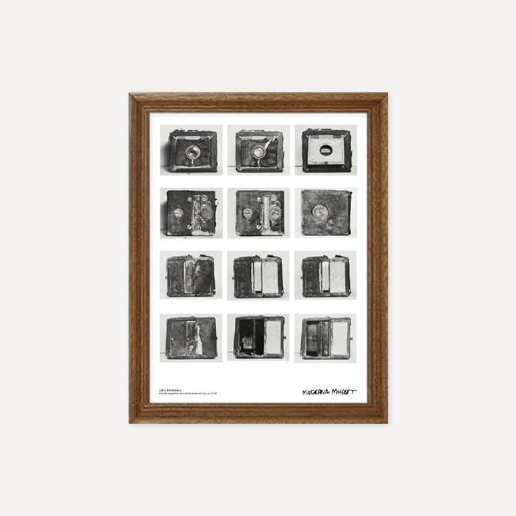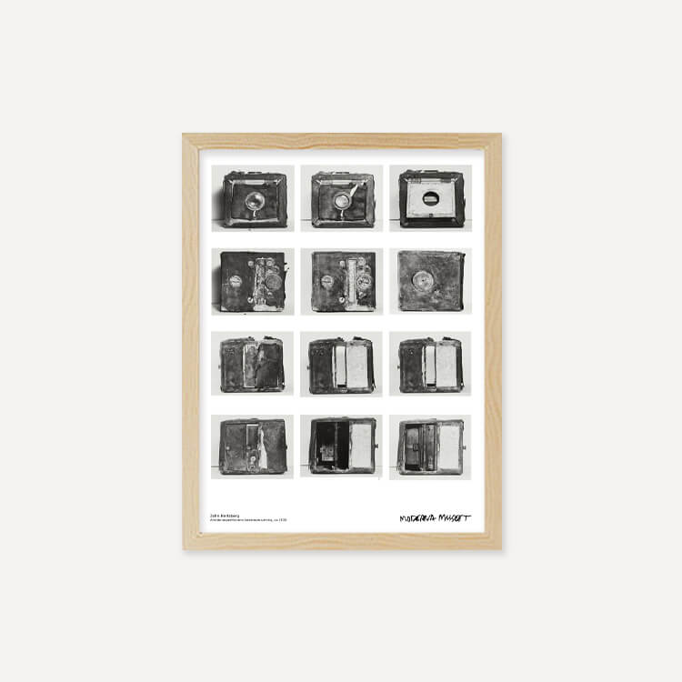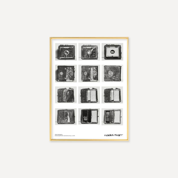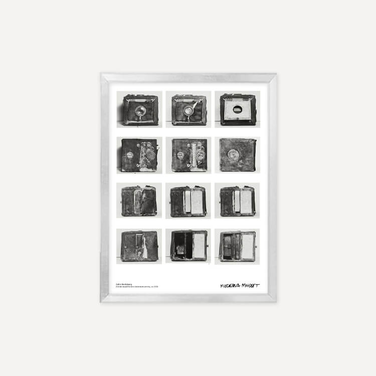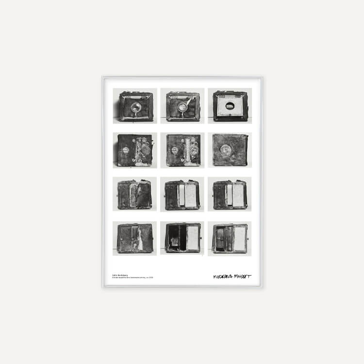 스웨덴 사진작가 존 허츠버그(John Hertzberg)의 카메라 장비 모습이 담긴 스웨덴 스톡홀름 현대미술관(Moderna Museet)의 포스터입니다.