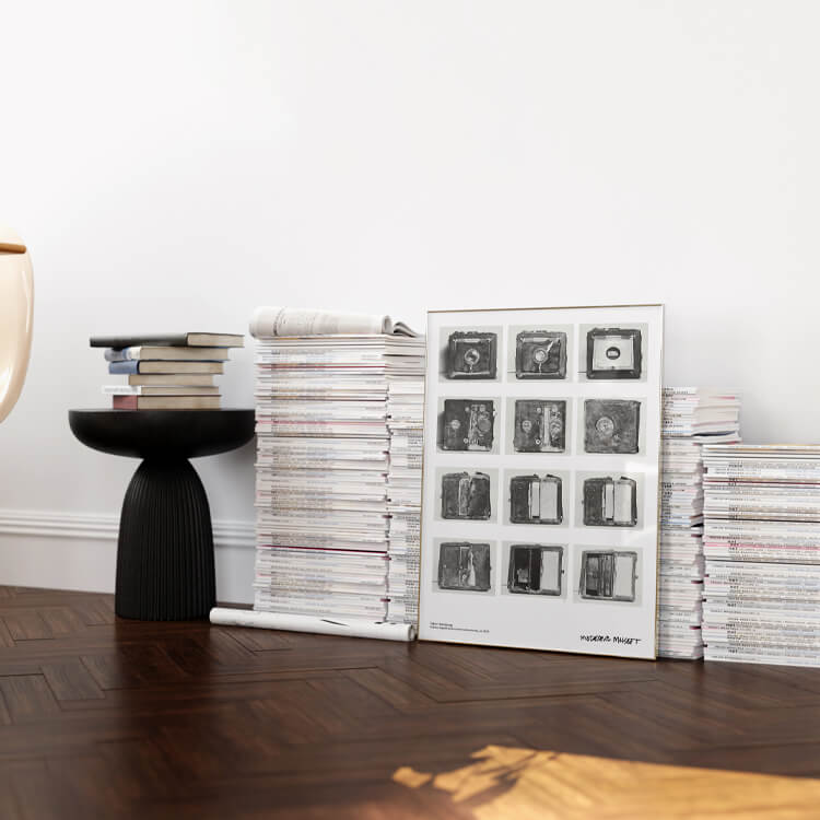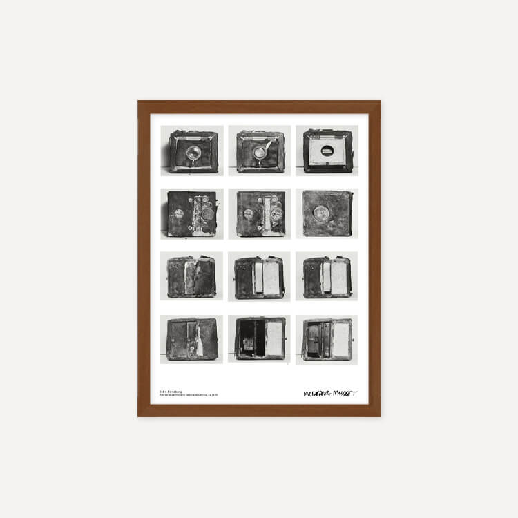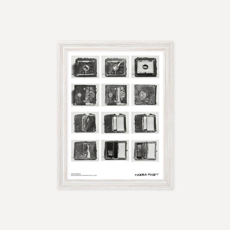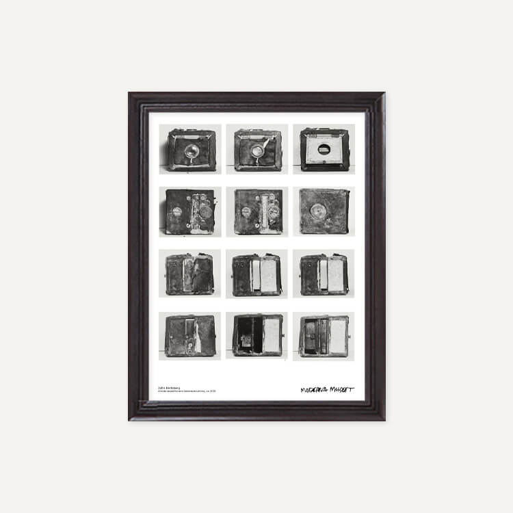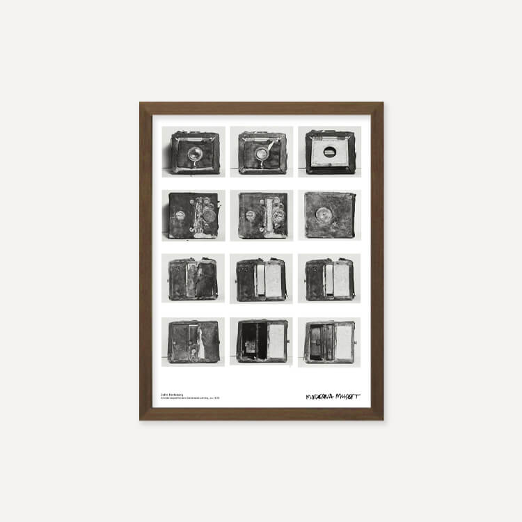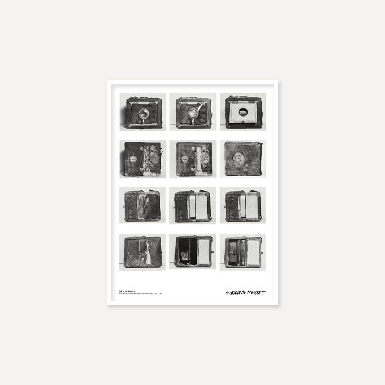 스웨덴 사진작가 존 허츠버그(John Hertzberg)의 카메라 장비 모습이 담긴 스웨덴 스톡홀름 현대미술관(Moderna Museet)의 포스터입니다.