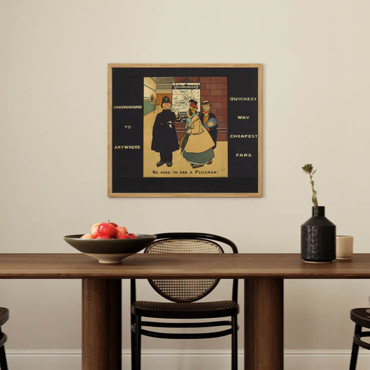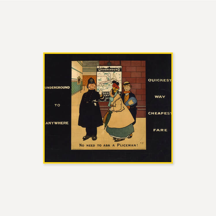 1908년 런던 지하철의 홍보와 공동 시스템을 사용하는 것에 대한 대중의 우려를 해소하기 위해 제작된 포스터로, 일러스트레이터 존 하셀(John Hassall)이 디자인했습니다.
