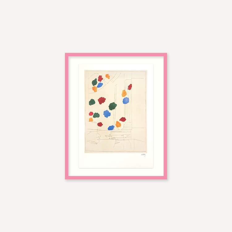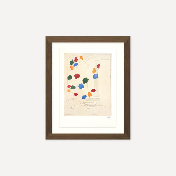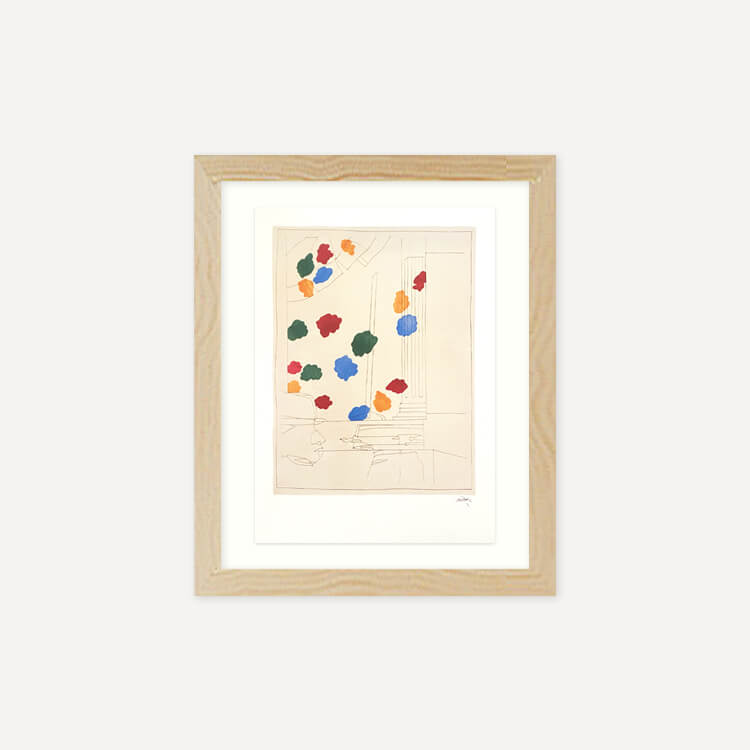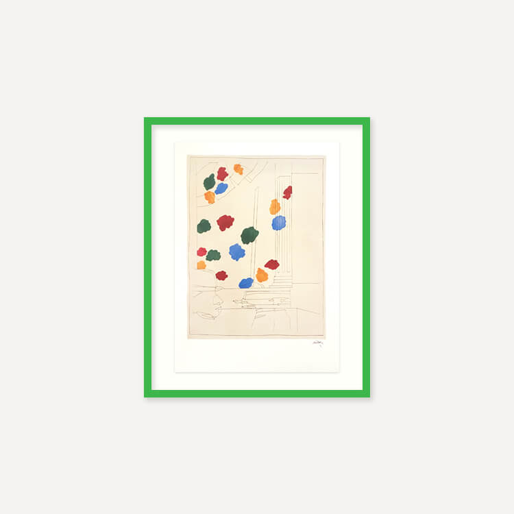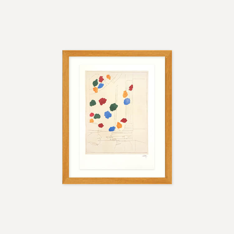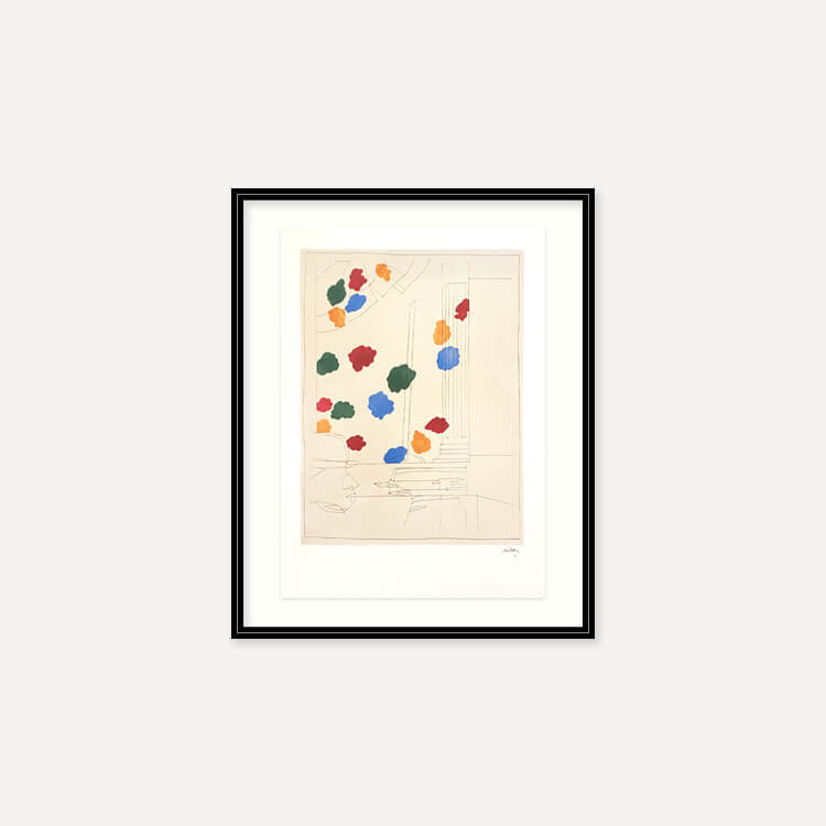 만화책과 팝 아트의 만화적 평면성과 눈길을 사로잡는 색상을 아우르는 그래픽 아크릴 페인팅으로 저명한 발레리오 아다미(Valério Adami)의 드로잉입니다.