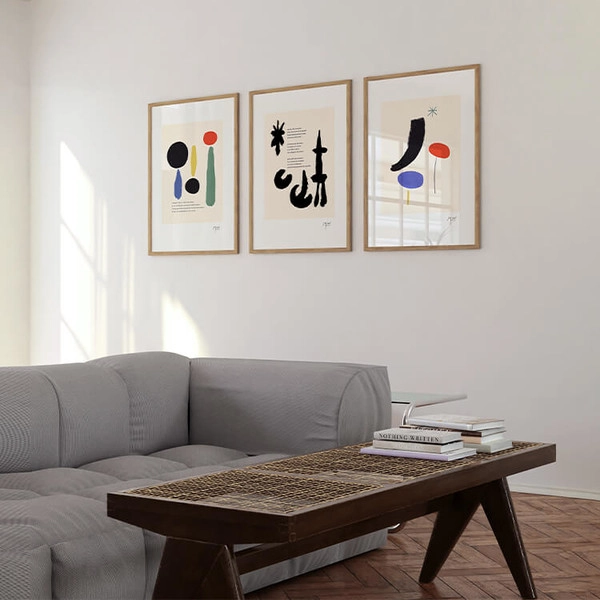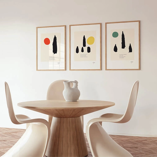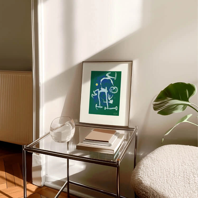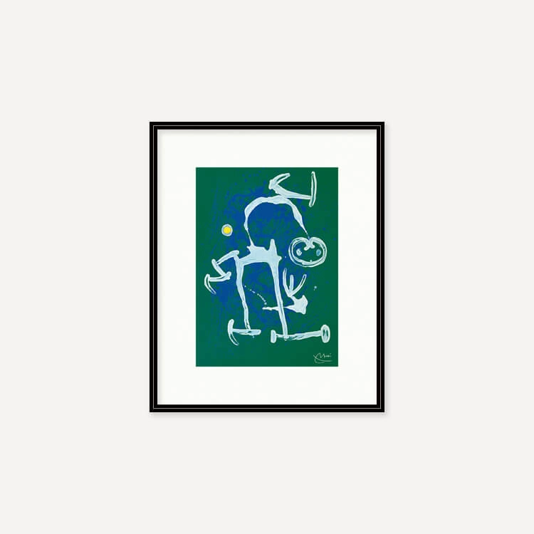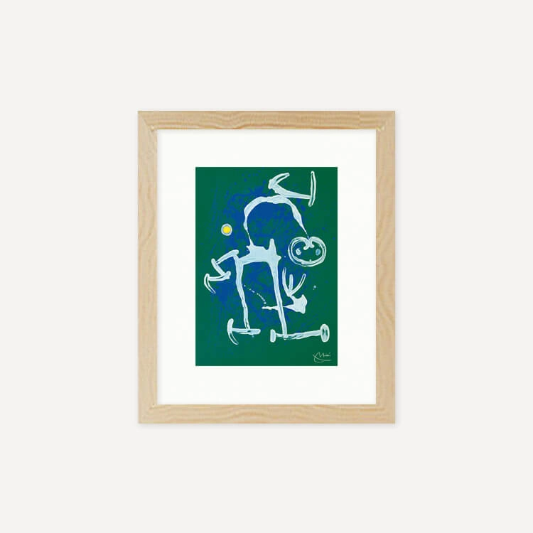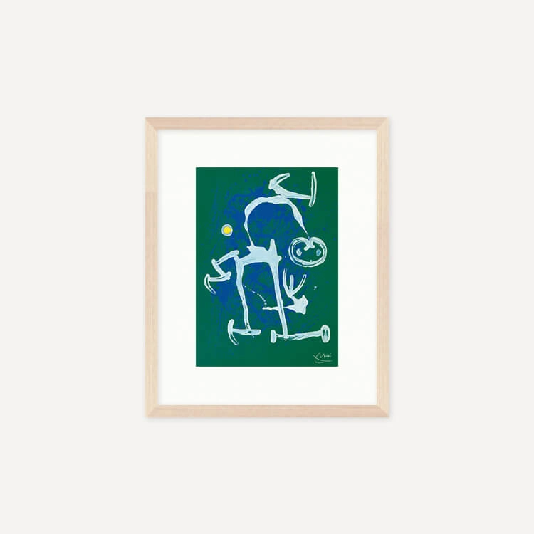 짙고 밝은 색채와 추상적인 형태가 특징인 스페인 화가 호안 미로(Joan Miró)의 〈L’illettré bleu, blanc〉 작품을 모티브로 제작된 아트 프린트입니다.