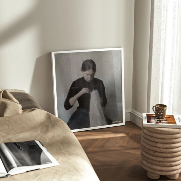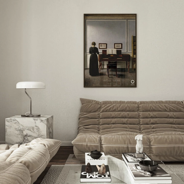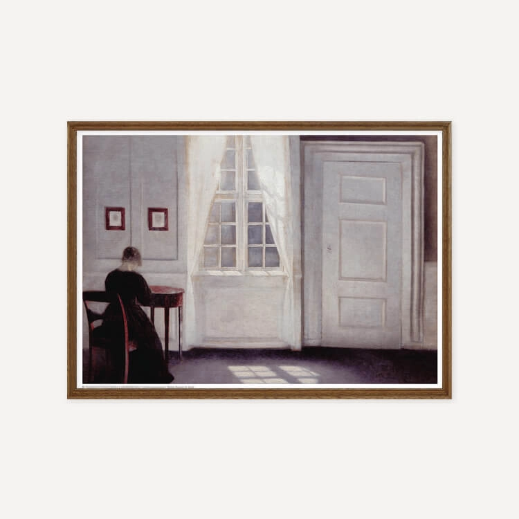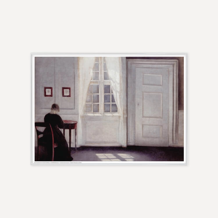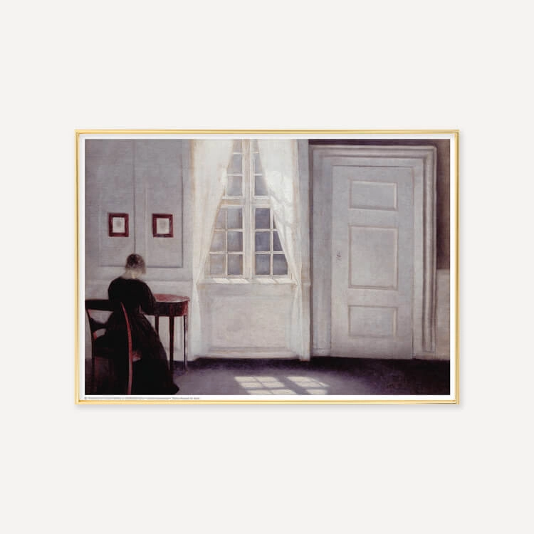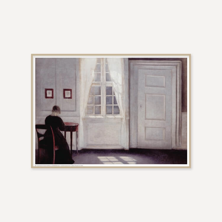 1898년 빌헬름 함메르쇠이(Vilhelm Hammershoi)는 아내 Ida와 함께 코펜하겐의 Strandgade 30번지에 있는 집으로 이사하여 1909년까지 살며 60개 이상의 실내 그림들을 탄생시켰습니다. 이 공간은 인물화와 풍경화를 모티브로 삼던 그를 진정으로 인테리어 화가로 만들었습니다. 방은 그의 끊임없는 주제의 원천이 되었고, 세상과의 경계를 이루는 벽과 창문은 그의 그림의 배경이 되었습니다.