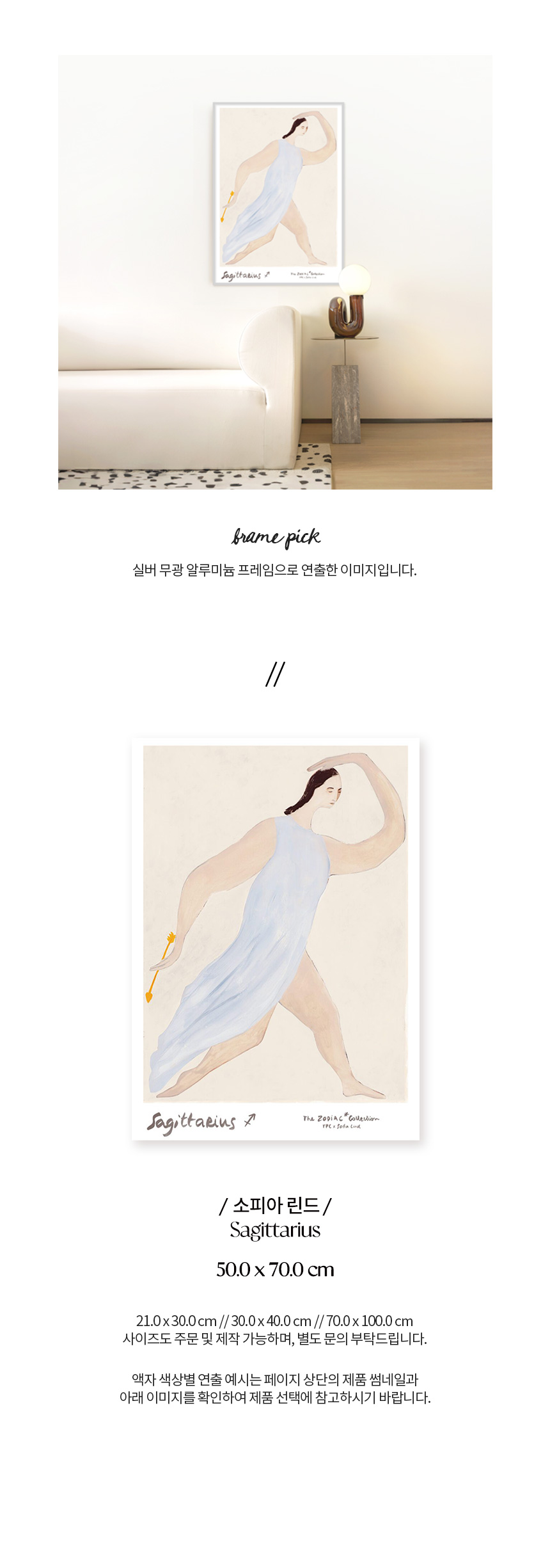 화살을 움켜쥐고 앞으로 몸을 기울인 인물은 사수자리의 탐험 정신과 끊임없는 추진력을 보여줍니다. 앞으로 향한 과감한 자세는 더 나은 미래를 향한 갈망과 도전을 상징적으로 담아냅니다.