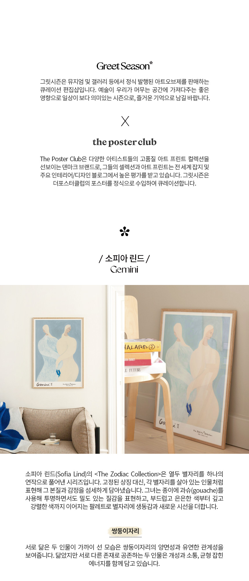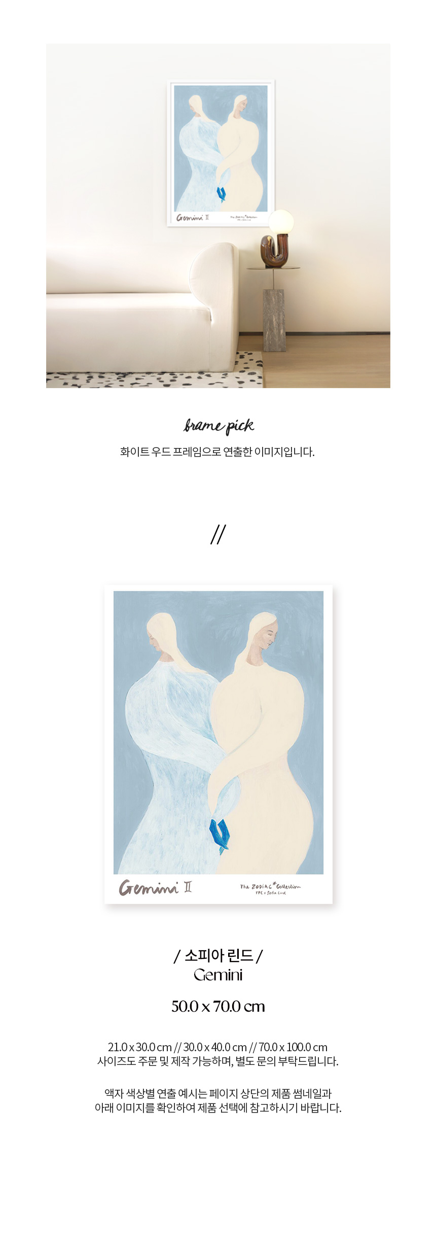 서로 닮은 두 인물이 가까이 선 모습은 쌍둥이자리의 양면성과 유연한 관계성을 보여줍니다. 닮았지만 서로 다른 존재로 공존하는 두 인물은 개성과 소통, 균형 잡힌 에너지를 함께 담고 있습니다.