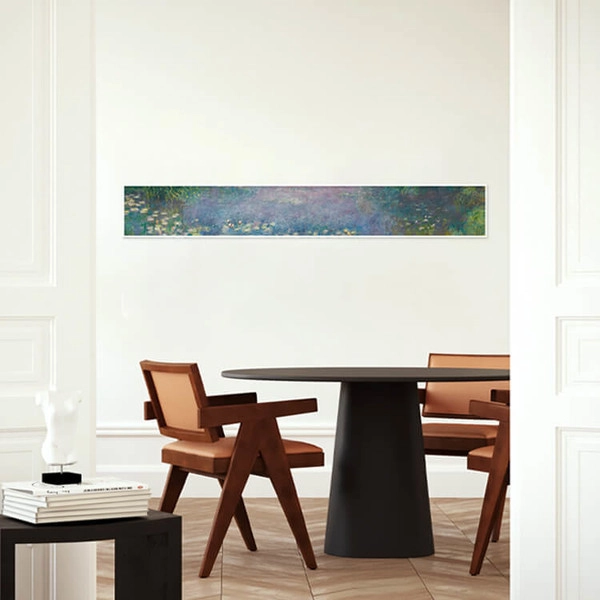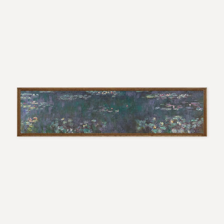 '빛의 화가' 클로드 모네(Claude Monet)의 〈수련〉 연작은 프랑스 파리 오랑주리 미술관의 거대한 벽면을 장식하기 위해 기획된 프로젝트의 작품들입니다. 그는 1908년 이후 시력이 악된 상황에서도 기억과 관찰을 바탕으로 빛의 변화 리듬에 따라 시시각각 변하는 정원의 모습을 포착해 나갔습니다. 특히 1914년 이후 제작된 연작들은 이전보다 옆으로 확장된 캔버스를 사용해 오직 물과 빛의 반사만을 화면 가득 담아낸 것이 특징입니다. 각각의 연작은 수면에 투영된 하늘과 주변 풍경의 찰나를 풍부한 표현력과 부드러운 붓놀림으로 구현하며 인상주의 예술의 정수를 보여줍니다.