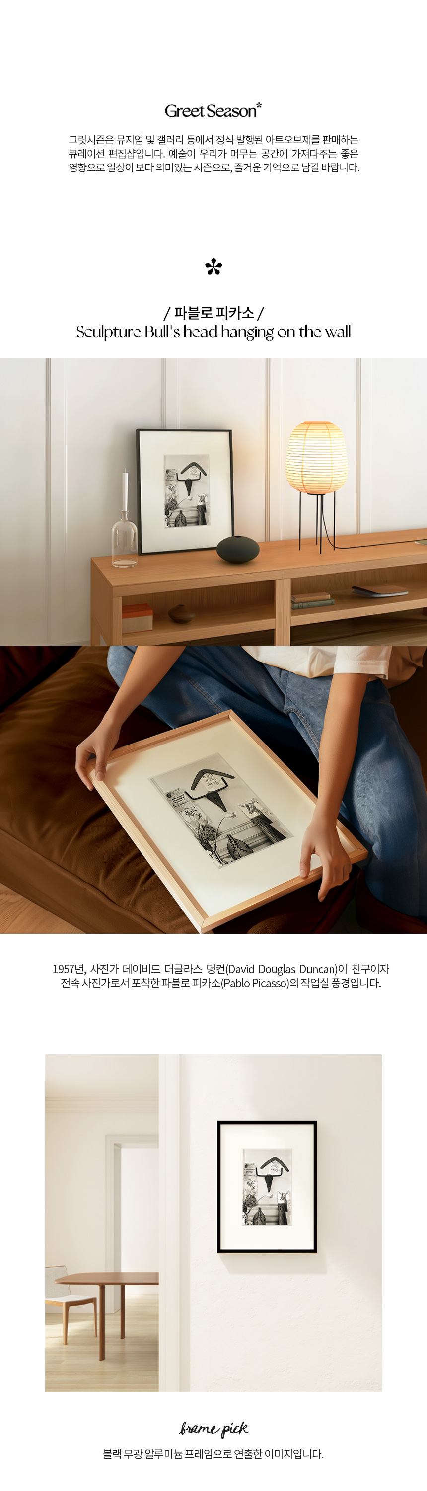 1957년, 사진가 데이비드 더글라스 덩컨(David Douglas Duncan)이 친구이자 전속 사진가로서 포착한 파블로 피카소(Pablo Picasso)의 작업실 풍경입니다.
