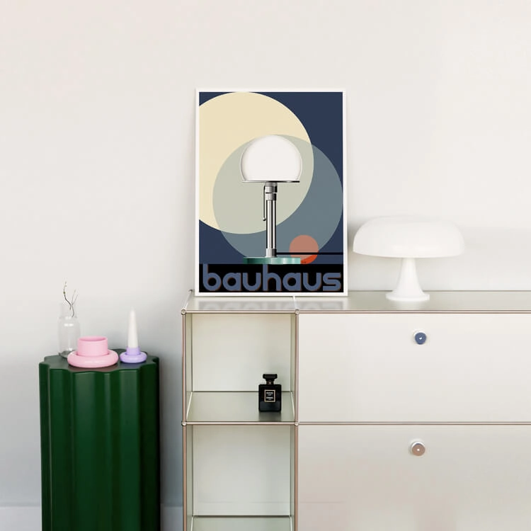 독일 예술 학교 바우하우스(Bauhaus) 출신의 빌헬름 바겐펠트(Wilhelm Wagenfeld)와 칼 주커(Karl J. Jucker)가 디자인한 ‘WG 24 Bauhaus Table Lamp’를 덴마크 그래픽 디자이너 닐스 디틀레프(Niels Ditlev)가 모티브로 제작한 아트 프린트입니다.